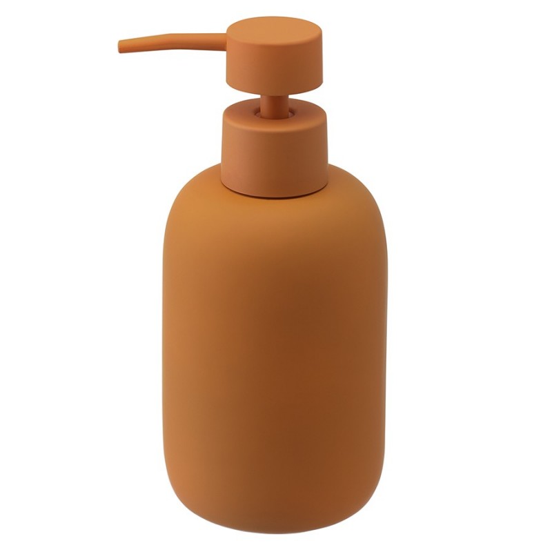 Набор ванных принадлежностей Flow теплого терракотового оттенка поможет организовать пространство вашей ванной комнаты и добавит в интерьер яркий акцент. В комплект входят диспенсер для жидкого мыла, стакан для зубных щеток, мыльница и специальная подставка. Все изделия выполнены из керамики и имеют специальное покрытие софт-тач, которое не только приятно на ощупь, но и обладает антискользящим эффектом.Особенности и преимущества:- Все изделия выполнены из качественной керамики, что обеспечивает им долговечность, привлекательный вид и простой уход. - Специальное покрытие предотвращает скольжение, гарантируя надежную фиксацию предметов и защищая их от падений, что особенно важно в условиях повышенной влажности. - На дне аксессуаров предусмотрены силиконовые ножки, которые обеспечивают дополнительную устойчивость на различных поверхностях. Они не встроены в основание товаров и при необходимости легко снимаются. - Эргономичная форма и небольшие размеры подставки позволяют размещать набор ванных принадлежностей в любом удобном месте.Материалы: диспенсер – керамика, ABS-пластик, полипропилен; стакан – керамика; мыльница – керамика; подставка – керамика. Размеры: диспенсер – 7,2х7,2х16,2 см; стакан – 7х7,5х10 см; мыльница – 14х10х2,5 см; подставка – 17х9х2,5 см. Объем диспенсера: 290 мл. Цвет: терракотовый. Количество предметов в наборе: 4 шт.Предметы можно мыть вручную в теплой мыльной воде.