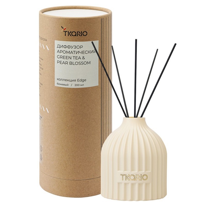 Диффузор ароматический Green tea & Pear blossom бежевого цвета из коллекции Edge с дизайном, вдохновленным русскими традициями, отлично подойдет для домашнего декора и создания в интерьере уютной, расслабляющей атмосферы. Фактурные грани и округлая поверхность стеклянного флакона отсылают нас к образу купола – символу духовного подъема и стремления к совершенству. В комплект входят 10 фибровых палочек.Аромат с первых нот погружает в атмосферу летнего сада, где к запаху свежей зелени и нежных цветов примешивается приятная сладость созревших на солнце фруктов. Эта ароматическая композиция непременно поднимет настроение и поможет расслабиться после тяжелого дня.Ноты: зеленый чай, груша, цветочные ноты.Объем: 200 мл. Материал флакона: стекло. Время диффузии: 14-16 недель, в зависимости от количества фибровых палочек. Для создания ароматической композиции использовались отдушки из Англии.Для применения поставить емкость с ароматическим составом на ровную поверхность и аккуратно открыть ее. Вставить палочки в горловину флакона (для легкого аромата достаточно 5 палочек, для более интенсивного - от 6 до 10 палочек). Аромат раскрывается в течение 3–6 часов. Рекомендуем переворачивать палочки каждые 2–3 недели, как только аромат становится менее интенсивным.! Установить диффузор в недоступном для детей и животных месте, вдали от источников тепла, открытого огня и раскаленных предметов. ! Избегать попадания ароматического состава на лакированные, окрашенные или глянцевые поверхности. В случае попадания жидкости на мебель или другие предметы незамедлительно уберите ее. ! Избегать контакта с кожей и глазами. ! В случае контакта с глазами немедленно промыть их большим количеством холодной воды и, если необходимо, обратиться к врачу. ! Не употреблять внутрь. При случайном проглатывании немедленно обратиться к врачу и показать этикетку с составом. ! Хранить флакон с ароматическим маслом с плотно закрытой крышкой в сухом и прохладном месте. ! Ароматическая жидкость не предназначена для ароматерапии в механических диффузорах и увлажнителях.