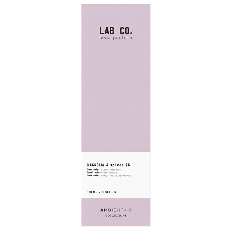 Парфюмерия для дома от испанского бренда Ambientair – прекрасный способ создать уютную, расслабляющую атмосферу и подчеркнуть индивидуальный характер интерьера.Утонченный цветочный аромат с пряными нотками специй. Парфюмерная композиция раскрывается постепенно и долго звучит. Диффузор имеет стильную упаковку, что позволяет использовать его в качестве необычного акцента интерьера.Семейство ароматов: цветочные, восточные Ноты: магнолия, специи.Диффузор для дома изготовлен на основе натуральных масел и дополнен тростниковыми палочками. Экологичные материалы безопасны для здоровья и окружающей среды.Материалы: изопропиловый спирт, ароматизаторы, натуральные масла. Объем: 100 мл.Для применения следует установить палочки внутрь флакона. Масла начнут постепенно впитываться в бамбук, распространяя легкий, ненавязчивый аромат. Интенсивность запаха можно регулировать количеством элементов – чем их больше, тем сильнее аромат. После того, как палочки впитают масла, их можно разложить в разных комнатах по всему дому.