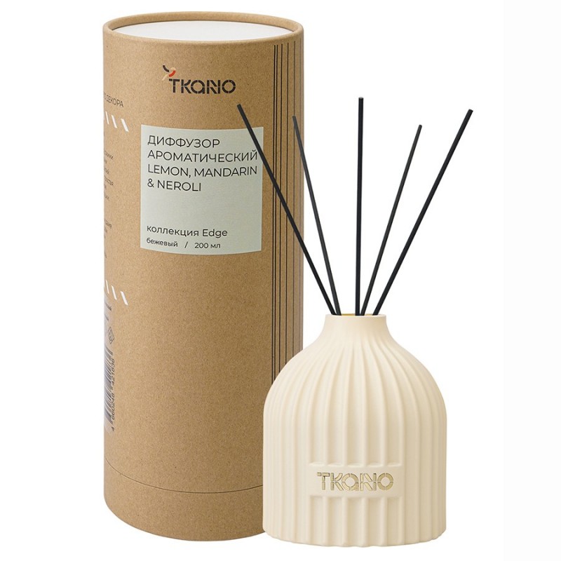 Диффузор ароматический Lemon, Mandarin & Neroli бежевого цвета из коллекции Edge с дизайном, вдохновленным русскими традициями, отлично подойдет для домашнего декора и создания в интерьере уютной, расслабляющей атмосферы. Фактурные грани и округлая поверхность стеклянного флакона отсылают нас к образу купола – символу духовного подъема и стремления к совершенству. В комплект входят 10 фибровых палочек.Аромат диффузора – настоящий оазис свежести и энергии, который дарит вдохновение и жизненную силу. Он ассоциируется с солнцем, спелыми фруктами, яркими цветами и теплыми летними днями, наполненными приятными моментами. Бодрящие цитрусовые ноты красиво оттеняются легкими цветочными аккордами. Мускус и ваниль в базе придают ароматической композиции глубину.Верхние ноты: лимон, мандарин. Средние ноты: нероли. Базовые ноты: мускус, сливочная ваниль, амбра.Объем: 200 мл. Материал флакона: стекло. Время диффузии: 14-16 недель, в зависимости от количества фибровых палочек. Для создания ароматической композиции использовались отдушки из Англии.Для применения поставить емкость с ароматическим составом на ровную поверхность и аккуратно открыть ее. Вставить палочки в горловину флакона (для легкого аромата достаточно 5 палочек, для более интенсивного - от 6 до 10 палочек). Аромат раскрывается в течение 3–6 часов. Рекомендуем переворачивать палочки каждые 2–3 недели, как только аромат становится менее интенсивным.! Установить диффузор в недоступном для детей и животных месте, вдали от источников тепла, открытого огня и раскаленных предметов. ! Избегать попадания ароматического состава на лакированные, окрашенные или глянцевые поверхности. В случае попадания жидкости на мебель или другие предметы незамедлительно уберите ее. ! Избегать контакта с кожей и глазами. ! В случае контакта с глазами немедленно промыть их большим количеством холодной воды и, если необходимо, обратиться к врачу. ! Не употреблять внутрь. При случайном проглатывании немедленно обратиться к врачу и показать этикетку с составом. ! Хранить флакон с ароматическим маслом с плотно закрытой крышкой в сухом и прохладном месте. ! Ароматическая жидкость не предназначена для ароматерапии в механических диффузорах и увлажнителях.