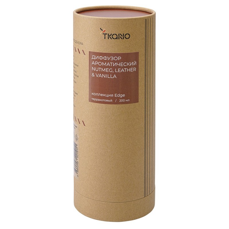 Диффузор ароматический Nutmeg, Leather & Vanilla терракотового цвета из коллекции Edge с дизайном, вдохновленным русскими традициями, отлично подойдет для домашнего декора и создания в интерьере уютной, расслабляющей атмосферы. Фактурные грани и округлая поверхность стеклянного флакона отсылают нас к образу купола – символу духовного подъема и стремления к совершенству. В комплект входят 10 фибровых палочек.Аромат с нотами мускатного ореха, кожи и ванили понравится поклонникам селективной парфюмерии и всем, кто любит эксперименты и находит вдохновение в самой жизни. Ароматическая композиция ассоциируется с уверенностью, благородством и достатком.Верхние ноты: мускатный орех, кожа. Средние ноты: пачули, жасмин, ветивер. Базовые ноты: уд, мускус, сливочная ваниль, сандаловое дерево.Объем: 200 мл. Материал флакона: стекло. Время диффузии: 14-16 недель, в зависимости от количества фибровых палочек. Для создания ароматической композиции использовались отдушки из Англии.Для применения поставить емкость с ароматическим составом на ровную поверхность и аккуратно открыть ее. Вставить палочки в горловину флакона (для легкого аромата достаточно 5 палочек, для более интенсивного - от 6 до 10 палочек). Аромат раскрывается в течение 3–6 часов. Рекомендуем переворачивать палочки каждые 2–3 недели, как только аромат становится менее интенсивным.! Установить диффузор в недоступном для детей и животных месте, вдали от источников тепла, открытого огня и раскаленных предметов. ! Избегать попадания ароматического состава на лакированные, окрашенные или глянцевые поверхности. В случае попадания жидкости на мебель или другие предметы незамедлительно уберите ее. ! Избегать контакта с кожей и глазами. ! В случае контакта с глазами немедленно промыть их большим количеством холодной воды и, если необходимо, обратиться к врачу. ! Не употреблять внутрь. При случайном проглатывании немедленно обратиться к врачу и показать этикетку с составом. ! Хранить флакон с ароматическим маслом с плотно закрытой крышкой в сухом и прохладном месте. ! Ароматическая жидкость не предназначена для ароматерапии в механических диффузорах и увлажнителях.