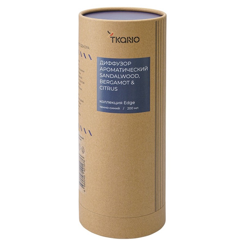 Диффузор ароматический Sandalwood, Bergamot & Citrus темно-синего цвета из коллекции Edge с дизайном, вдохновленным русскими традициями, отлично подойдет для домашнего декора и создания в интерьере уютной, расслабляющей атмосферы. Фактурные грани и округлая поверхность стеклянного флакона отсылают нас к образу купола – символу духовного подъема и стремления к совершенству. В комплект входят 10 фибровых палочек.Легкая ароматическая композиция с травянистой горчинкой бергамота, свежестью цитруса и нежной пряностью сандала дарит ощущение спокойствия и безмятежности, помогает отключиться от повседневной суеты и насладиться моментом.Ноты: бергамот, цитрус, сандал.Объем: 200 мл. Материал флакона: стекло. Время диффузии: 14-16 недель, в зависимости от количества фибровых палочек. Для создания ароматической композиции использовались отдушки из Англии.Для применения поставить емкость с ароматическим составом на ровную поверхность и аккуратно открыть ее. Вставить палочки в горловину флакона (для легкого аромата достаточно 5 палочек, для более интенсивного - от 6 до 10 палочек). Аромат раскрывается в течение 3–6 часов. Рекомендуем переворачивать палочки каждые 2–3 недели, как только аромат становится менее интенсивным.! Установить диффузор в недоступном для детей и животных месте, вдали от источников тепла, открытого огня и раскаленных предметов. ! Избегать попадания ароматического состава на лакированные, окрашенные или глянцевые поверхности. В случае попадания жидкости на мебель или другие предметы незамедлительно уберите ее. ! Избегать контакта с кожей и глазами. ! В случае контакта с глазами немедленно промыть их большим количеством холодной воды и, если необходимо, обратиться к врачу. ! Не употреблять внутрь. При случайном проглатывании немедленно обратиться к врачу и показать этикетку с составом. ! Хранить флакон с ароматическим маслом с плотно закрытой крышкой в сухом и прохладном месте. ! Ароматическая жидкость не предназначена для ароматерапии в механических диффузорах и увлажнителях.