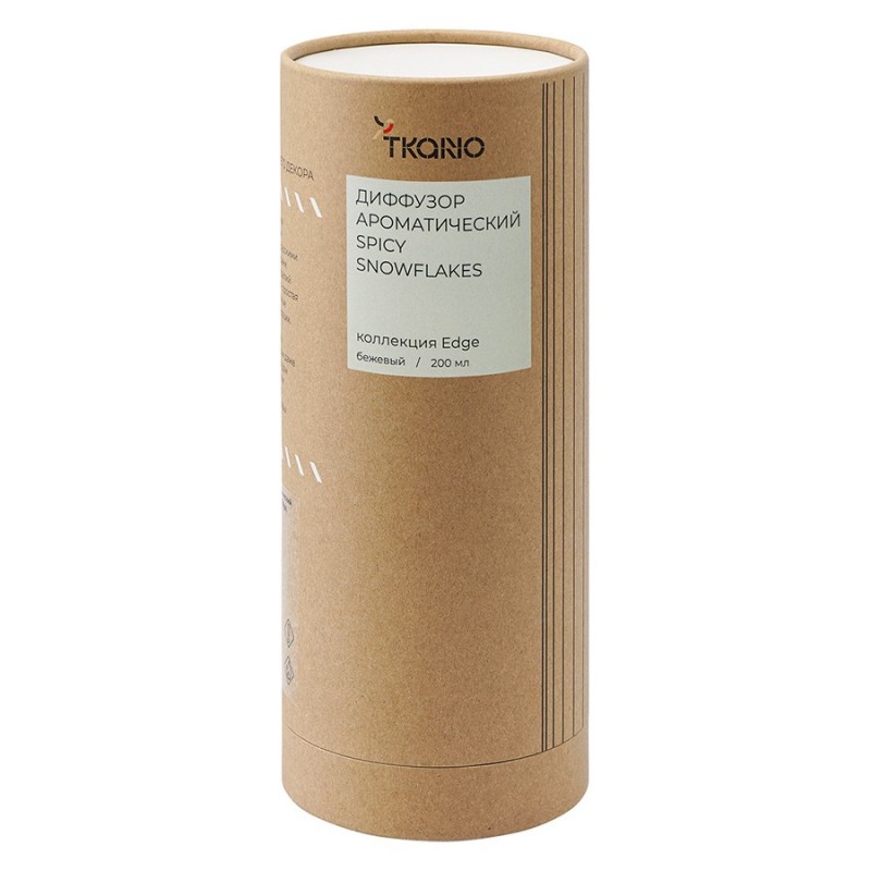 Диффузор ароматический Spicy Snowflakes бежевого цвета из коллекции Edge с дизайном, вдохновленным русскими традициями, отлично подойдет для домашнего декора и создания в интерьере уютной, расслабляющей атмосферы. Фактурные грани и округлая поверхность стеклянного флакона отсылают нас к образу купола – символу духовного подъема и стремления к совершенству. В комплект входят 10 фибровых палочек.Этот аромат идеально подходит для создания в интерьере праздничного настроения и теплой домашней атмосферы за столом.Верхние ноты: мандарин Средние ноты: корица, гвоздика Базовые ноты: яблоко, ванильОбъем: 200 мл. Материал флакона: стекло. Время диффузии: 14-16 недель, в зависимости от количества фибровых палочек. Для создания ароматической композиции использовались отдушки из Англии.Для применения поставить емкость с ароматическим составом на ровную поверхность и аккуратно открыть ее. Вставить палочки в горловину флакона (для легкого аромата достаточно 5 палочек, для более интенсивного - от 6 до 10 палочек). Аромат раскрывается в течение 3–6 часов. Рекомендуем переворачивать палочки каждые 2–3 недели, как только аромат становится менее интенсивным.! Установить диффузор в недоступном для детей и животных месте, вдали от источников тепла, открытого огня и раскаленных предметов. ! Избегать попадания ароматического состава на лакированные, окрашенные или глянцевые поверхности. В случае попадания жидкости на мебель или другие предметы незамедлительно уберите ее. ! Избегать контакта с кожей и глазами. ! В случае контакта с глазами немедленно промыть их большим количеством холодной воды и, если необходимо, обратиться к врачу. ! Не употреблять внутрь. При случайном проглатывании немедленно обратиться к врачу и показать этикетку с составом. ! Хранить флакон с ароматическим маслом с плотно закрытой крышкой в сухом и прохладном месте. ! Ароматическая жидкость не предназначена для ароматерапии в механических диффузорах и увлажнителях.