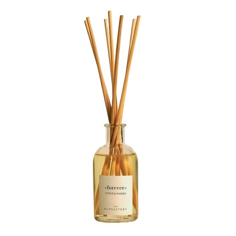 Парфюмерия для дома от испанского бренда Ambientair – прекрасный способ создать уютную, расслабляющую атмосферу и подчеркнуть индивидуальный характер интерьера.Аромат Citrus&Shades погружает в атмосферу теплых летних дней на побережье, когда в воздухе ощущается сладость созревших на солнце цитрусов, разбавленная нотками свежей зелени. Парфюмерная композиция раскрывается постепенно и долго звучит. Диффузор имеет стильную упаковку, что позволяет использовать его в качестве необычного акцента интерьера.Верхние ноты: грейпфрут, цедра апельсина, зеленые листья Средние ноты: пряные ноты, базилик, перец, роза, жасмин Базовые ноты: пачули, кедр, сандал, сладкая амбраДиффузор для дома изготовлен на основе натуральных масел и дополнен тростниковыми палочками. Экологичные материалы безопасны для здоровья и окружающей среды.Коллекция The Olphactory воплощает размеренный образ жизни, подчеркивая важность комфорта и домашнего уюта. Представленные в этой линейке ароматы способствуют расслаблению и погружению в приятные воспоминания, создавая идеальные условия для отдыха.Материалы: изопропиловый спирт, этанол, ароматизаторы, натуральные масла. Объем: 100 мл.Для применения следует установить палочки внутрь флакона. Масла начнут постепенно впитываться в бамбук, распространяя легкий, ненавязчивый аромат. Интенсивность запаха можно регулировать количеством элементов – чем их больше, тем сильнее аромат. После того, как палочки впитают масла, их можно разложить в разных комнатах по всему дому.
