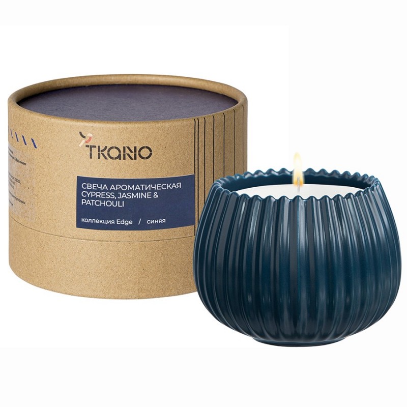Свеча ароматическая Cypress, Jasmine & Patchouli синего цвета из коллекции Edge с дизайном, вдохновленным русскими традициями, отлично подойдет для домашнего декора и создания в интерьере уютной, расслабляющей атмосферы. Фактурные грани и округлая поверхность фарфорового стакана отсылают нас к образу купола – символу духовного подъема и стремления к совершенству. Экологичные материалы, такие как соевый, кокосовый воск и фитиль из натурального хлопка делают свечу безопасной для здоровья и окружающей среды. При горении она не выделяет вредных соединений и не коптит. Однако, во избежание перегрева стакана, рекомендуем не зажигать ее более, чем на 4 часа.Аромат этой свечи покорит своим неповторимым звучанием и поможет создать вам свою собственную атмосферу роскоши и комфорта. Свежие акценты жасмина и герани прекрасно гармонируют с хвойно-цитрусовыми нотами кипариса, сливаясь в красивую древесно-цветочную композицию. Присутствие в пирамиде пачули добавляет аромату загадочные смолистые оттенки.Верхние ноты: чистый мускус, лимон, кипарис. Средние ноты: свежие цветы, жасмин, герань. Базовые ноты: сандаловое дерево, мускус, темные пачули, ваниль.Размеры свечи: 8х8х6,5 см. Материал стакана: фарфор. Время горения: 30 часов.Состав: Соевый воск, кокосовый воск, ароматическая композиция, хлопковый фитиль. Для создания ароматической композиции использовались отдушки из Англии.! Регулярно подрезать фитиль, чтобы его высота не превышала 6-8 мм. Благодаря этому пламя будет ярким и ровным. ! Не оставлять свечу на ветру или сквозняке – это может привести к неравномерному горению и, как следствие, – к образованию сильных подтеков. ! Зажигать свечу, предварительно расположив ее на подсвечнике, если она идет без специального стакана. ! Не оставлять горящую свечу без присмотра. ! Использовать вдали от легковоспламеняющихся материалов. ! Беречь от детей и домашних животных.
