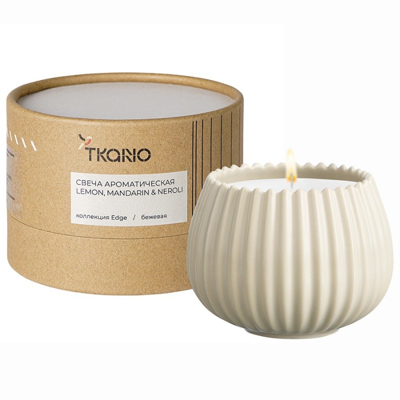 Свеча ароматическая Lemon, Mandarin & Neroli бежевого цвета из коллекции Edge с дизайном, вдохновленным русскими традициями, отлично подойдет для домашнего декора и создания в интерьере уютной, расслабляющей атмосферы. Фактурные грани и округлая поверхность фарфорового стакана отсылают нас к образу купола – символу духовного подъема и стремления к совершенству. Экологичные материалы, такие как соевый, кокосовый воск и фитиль из натурального хлопка делают свечу безопасной для здоровья и окружающей среды. При горении она не выделяет вредных соединений и не коптит. Однако, во избежание перегрева стакана, рекомендуем не зажигать ее более, чем на 4 часа.Аромат свечи – настоящий оазис свежести и энергии, который дарит вдохновение и жизненную силу. Он ассоциируется с солнцем, спелыми фруктами, яркими цветами и теплыми летними днями, наполненными приятными моментами. Бодрящие цитрусовые ноты красиво оттеняются легкими цветочными аккордами. Мускус и ваниль в базе придают ароматической композиции глубину.Верхние ноты: лимон, мандарин. Средние ноты: нероли. Базовые ноты: мускус, сливочная ваниль, амбра.Размеры свечи: 8х8х6,5 см. Материал стакана: фарфор. Время горения: 30 часов.Состав: Соевый воск, кокосовый воск, ароматическая композиция, хлопковый фитиль. Для создания ароматической композиции использовались отдушки из Англии.! Регулярно подрезать фитиль, чтобы его высота не превышала 6-8 мм. Благодаря этому пламя будет ярким и ровным. ! Не оставлять свечу на ветру или сквозняке – это может привести к неравномерному горению и, как следствие, – к образованию сильных подтеков. ! Зажигать свечу, предварительно расположив ее на подсвечнике, если она идет без специального стакана. ! Не оставлять горящую свечу без присмотра. ! Использовать вдали от легковоспламеняющихся материалов. ! Беречь от детей и домашних животных.
