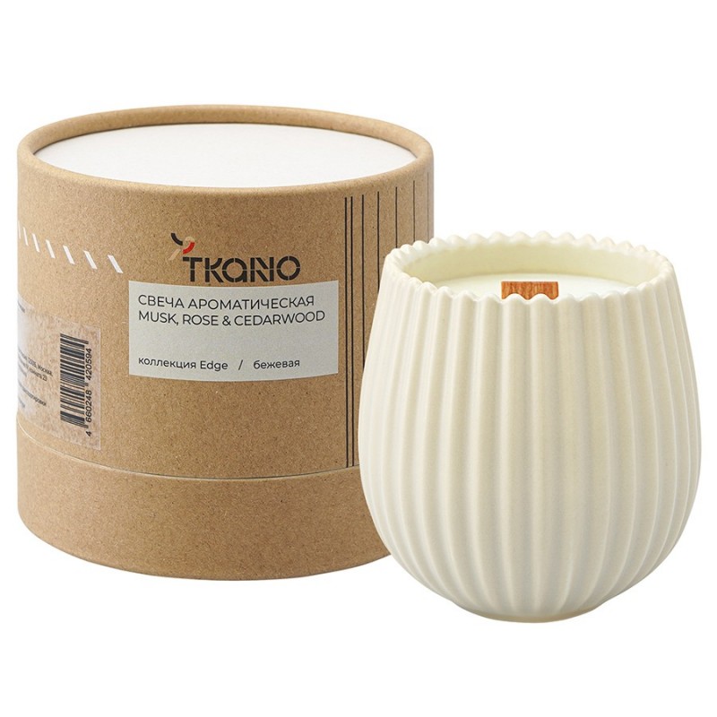 Свеча ароматическая с деревянным фитилем Musk, Rose & Cedarwood бежевого цвета из коллекции Edge с дизайном, вдохновленным русскими традициями, отлично подойдет для домашнего декора и создания в интерьере уютной, расслабляющей атмосферы. Фактурные грани и округлая поверхность фарфорового стакана отсылают нас к образу купола – символу духовного подъема и стремления к совершенству. Экологичные материалы, такие как соевый, кокосовый воск и фитиль из натурального дерева делают свечу безопасной для здоровья и окружающей среды. При горении она не выделяет вредных соединений и не коптит. Однако, во избежание перегрева стакана, рекомендуем не зажигать ее более, чем на 4 часа.Аромат свечи подарит чувство спокойствия и умиротворения, став мостиком между внутренним и внешним мирами. Красивое сочетание сливочно-ванильных, древесных и цветочных нот погружает в медитативное состояние, позволяет расслабиться и настроиться на нужный лад.Верхние ноты: сливочно-ванильные, свежий мускус. Средние ноты: бергамот, роза, темные пачули. Базовые ноты: амбра, кедр.Размеры свечи: 8х8х8,5 см. Материал стакана: фарфор. Время горения: 60 ч.Состав: Соевый воск, кокосовый воск, ароматическая композиция, деревянный фитиль. Для создания ароматической композиции использовались отдушки из Англии.! Регулярно подрезать фитиль, чтобы его высота не превышала 6-8 мм. Благодаря этому пламя будет ярким и ровным. ! Не оставлять свечу на ветру или сквозняке – это может привести к неравномерному горению и, как следствие, – к образованию сильных подтеков. ! Зажигать свечу, предварительно расположив ее на подсвечнике, если она идет без специального стакана. ! Не оставлять горящую свечу без присмотра. ! Использовать вдали от легковоспламеняющихся материалов. ! Беречь от детей и домашних животных.
