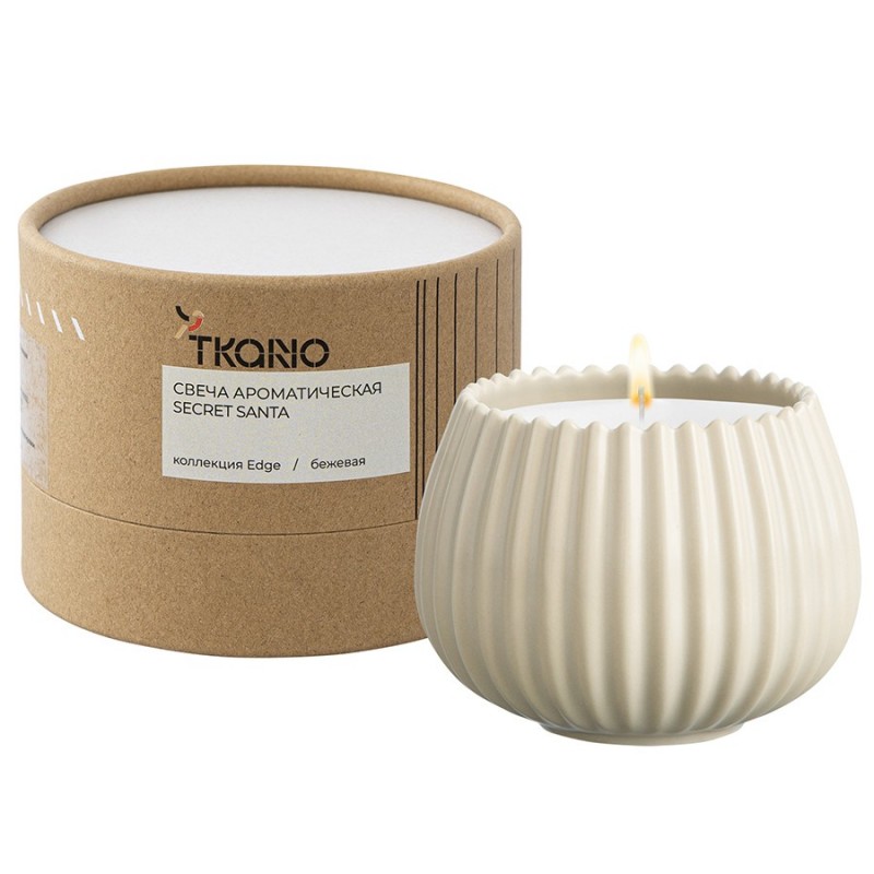Свеча ароматическая Secret Santa бежевого цвета из коллекции Edge с дизайном, вдохновленным русскими традициями, отлично подойдет для домашнего декора и создания в интерьере уютной, расслабляющей атмосферы. Фактурные грани и округлая поверхность фарфорового стакана отсылают нас к образу купола – символу духовного подъема и стремления к совершенству. Экологичные материалы, такие как соевый, кокосовый воск и фитиль из натурального хлопка делают свечу безопасной для здоровья и окружающей среды. При горении она не выделяет вредных соединений и не коптит. Однако, во избежание перегрева стакана, рекомендуем не зажигать ее более, чем на 4 часа.Аромат этой свечи идеально подходит для создания в интерьере праздничного настроения и теплой домашней атмосферы за столом.Ноты: мята, пихта, тиаре, ваниль, фруктовые ноты.Размеры свечи: 8х8х6,5 см. Материал стакана: фарфор. Время горения: 30 часов.Состав: Соевый воск, кокосовый воск, ароматическая композиция, хлопковый фитиль. Для создания ароматической композиции использовались отдушки из Англии.! Регулярно подрезать фитиль, чтобы его высота не превышала 6-8 мм. Благодаря этому пламя будет ярким и ровным. ! Не оставлять свечу на ветру или сквозняке – это может привести к неравномерному горению и, как следствие, – к образованию сильных подтеков. ! Зажигать свечу, предварительно расположив ее на подсвечнике, если она идет без специального стакана. ! Не оставлять горящую свечу без присмотра. ! Использовать вдали от легковоспламеняющихся материалов. ! Беречь от детей и домашних животных.