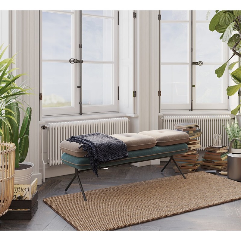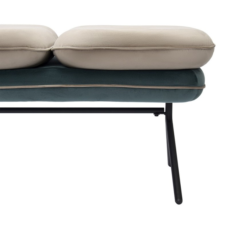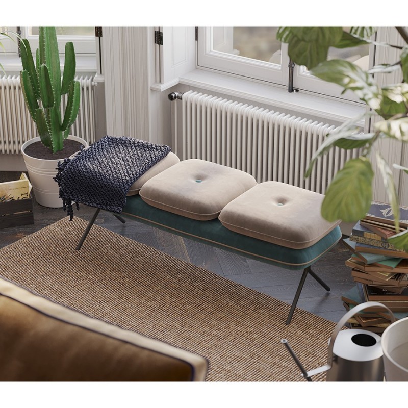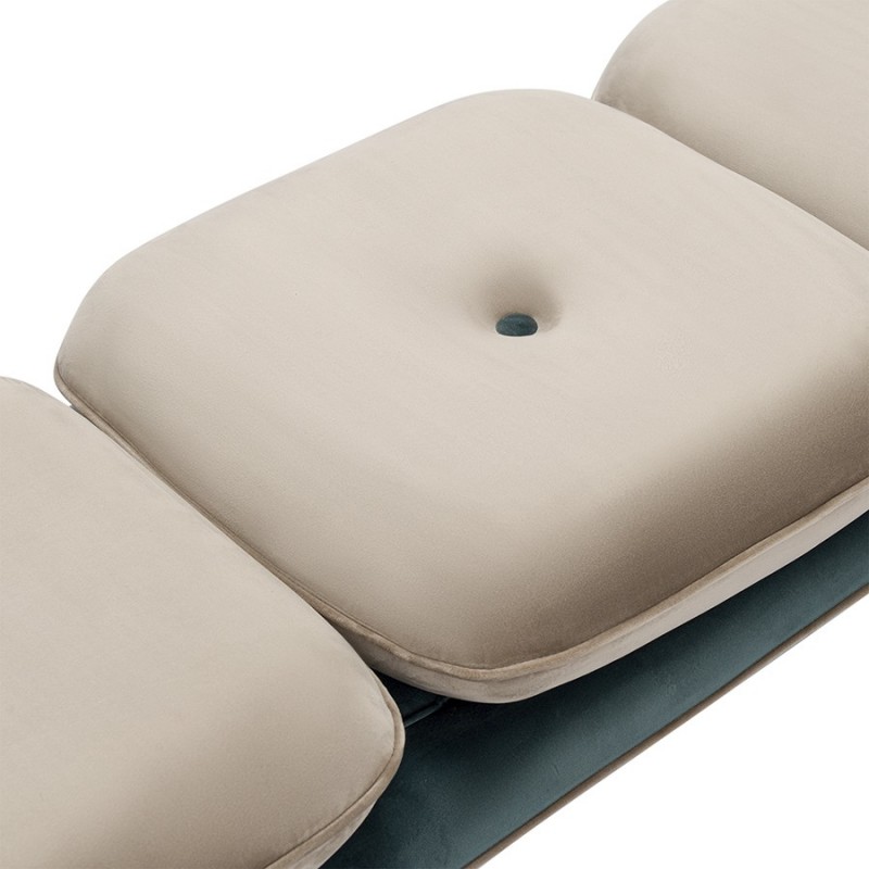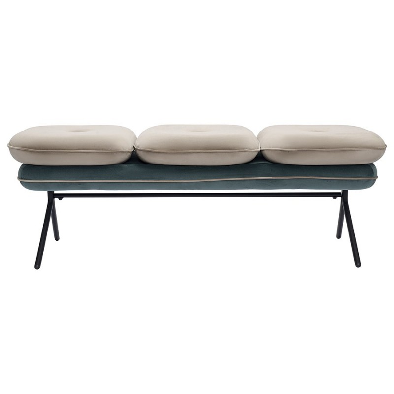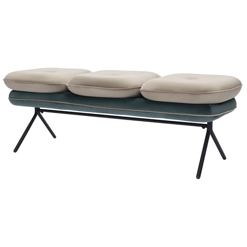 Банкетка Pea с мягкой обивкой из бархатистого велюра станет настоящим украшением интерьера и идеальным выбором для ценителей качественной и элегантной мебели. Она может использоваться как отдельно, так и в сочетании с туалетным или журнальным столиком.Особенности и преимущества:- Обивка из велюра создает приятные тактильные ощущения, смотрится презентабельно, придавая мебели изысканный вид. - Удобные раздельные сиденья с наполнителем из пенополиуретана обеспечивают комфортную посадку. - Ножки из железа имеют порошковое покрытие, которое защищает их поверхность от коррозии, потускнения цвета и механических повреждений. - Стабильная и прочная конструкция делает банкетку устойчивой, надежной и долговечной. - Дизайн актуален для классических и современных стилевых направлений.Перефразируя слова известного британского дизайнера Уильяма Морриса, дом – это не место для бесполезных и некрасивых вещей, и уникальная коллекция Pea является ярким тому подтверждением. В ее основе лежит сказка “Принцесса на горошине”, и ее главная цель – пробудить ребенка в каждом из нас. Мы верим, что предметы должны быть не просто функциональными, но и нести в себе определенный смысл. Поэтому мебель из нашей новой коллекции не только приносит комфорт в ваш дом, но и рассказывает захватывающую историю.Первыми товарами линейки стали предметы мебели для спальни, сегодня она уже включает в себя пуфы, банкетки и стулья. Главный мотив – двойная подушка, которая напоминает нам о сказочном испытании принцессы. Основные особенности коллекции – пуговицы-горошины, подушки квадратной формы с закругленными краями и оригинальные ножки в виде перевернутой буквы Y, которые делают дизайн живым и непринужденным.Материалы: 100% полиэстер, пенополиуретан, фанера, железо. Размеры: 123,9х43,1х42,9 см. Цвет: бежевый/сине-зеленый. Максимальная нагрузка – 150 кг.Рекомендуется регулярно пылесосить мебель с помощью специальной насадки – резиновой или мягкой щетки. Образовавшиеся пятна можно удалять губкой или салфеткой со слабым мыльным раствором воды. Запрещается использовать абразивные материалы и агрессивную бытовую химию.