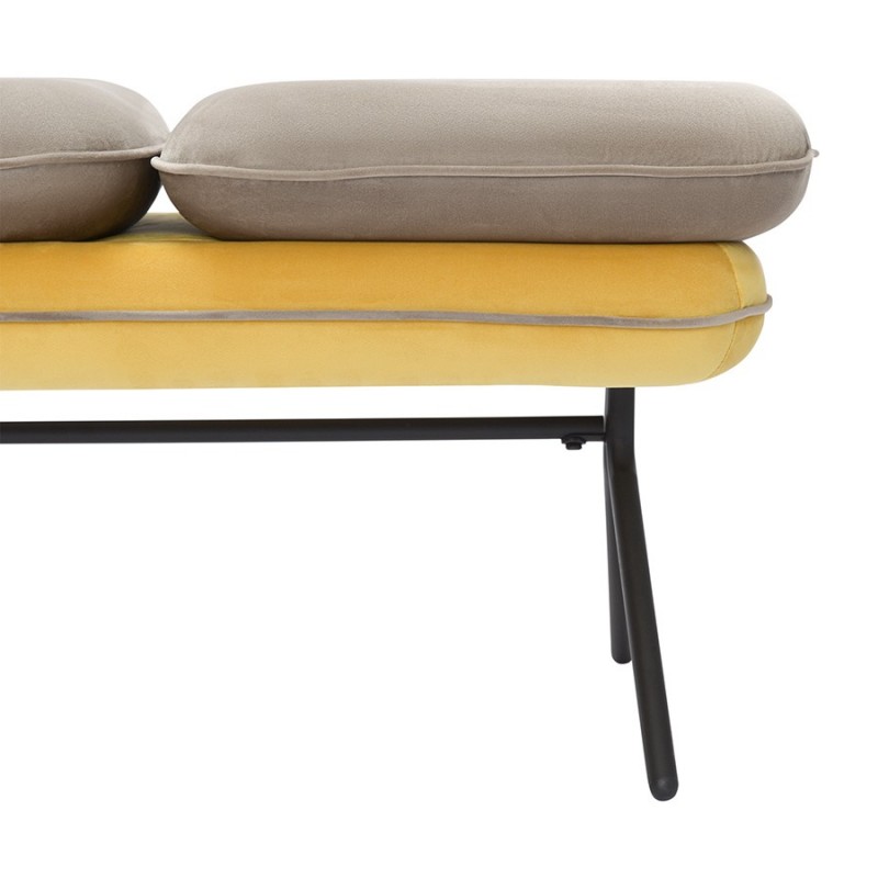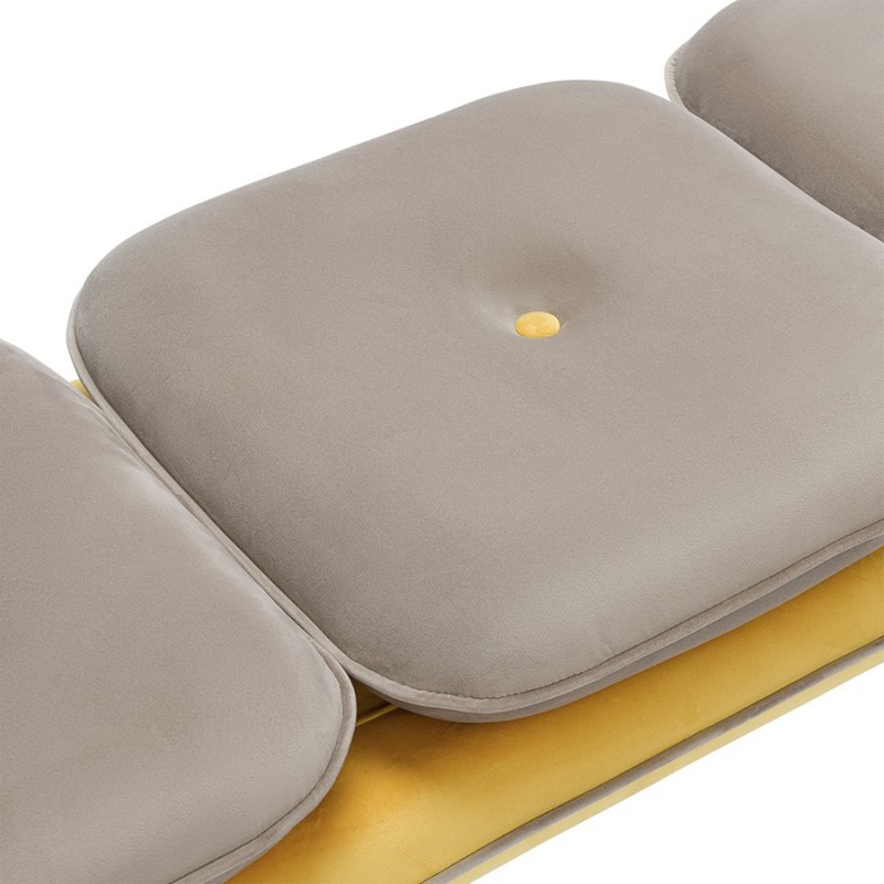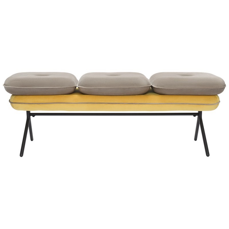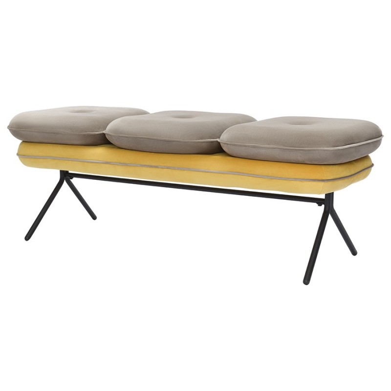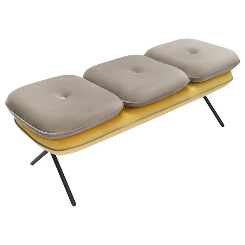 Банкетка Pea с мягкой обивкой из бархатистого велюра станет настоящим украшением интерьера и идеальным выбором для ценителей качественной и элегантной мебели. Она может использоваться как отдельно, так и в сочетании с туалетным или журнальным столиком.Особенности и преимущества:- Обивка из велюра создает приятные тактильные ощущения, смотрится презентабельно, придавая мебели изысканный вид. - Удобные раздельные сиденья с наполнителем из пенополиуретана обеспечивают комфортную посадку. - Ножки из железа имеют порошковое покрытие, которое защищает их поверхность от коррозии, потускнения цвета и механических повреждений. - Стабильная и прочная конструкция делает банкетку устойчивой, надежной и долговечной. - Дизайн актуален для классических и современных стилевых направлений.Перефразируя слова известного британского дизайнера Уильяма Морриса, дом – это не место для бесполезных и некрасивых вещей, и уникальная коллекция Pea является ярким тому подтверждением. В ее основе лежит сказка “Принцесса на горошине”, и ее главная цель – пробудить ребенка в каждом из нас. Мы верим, что предметы должны быть не просто функциональными, но и нести в себе определенный смысл. Поэтому мебель из нашей новой коллекции не только приносит комфорт в ваш дом, но и рассказывает захватывающую историю.Первыми товарами линейки стали предметы мебели для спальни, сегодня она уже включает в себя пуфы, банкетки и стулья. Главный мотив – двойная подушка, которая напоминает нам о сказочном испытании принцессы. Основные особенности коллекции – пуговицы-горошины, подушки квадратной формы с закругленными краями и оригинальные ножки в виде перевернутой буквы Y, которые делают дизайн живым и непринужденным.Материалы: 100% полиэстер, пенополиуретан, фанера, железо. Размеры: 123,9х43,1х42,9 см. Цвет: бежевый/желтый. Максимальная нагрузка – 150 кг.Рекомендуется регулярно пылесосить мебель с помощью специальной насадки – резиновой или мягкой щетки. Образовавшиеся пятна можно удалять губкой или салфеткой со слабым мыльным раствором воды. Запрещается использовать абразивные материалы и агрессивную бытовую химию.