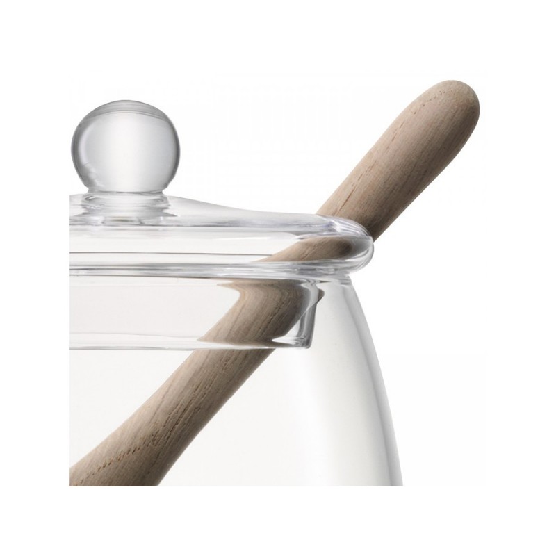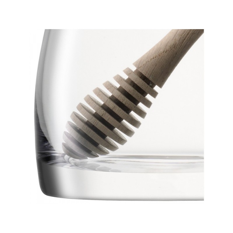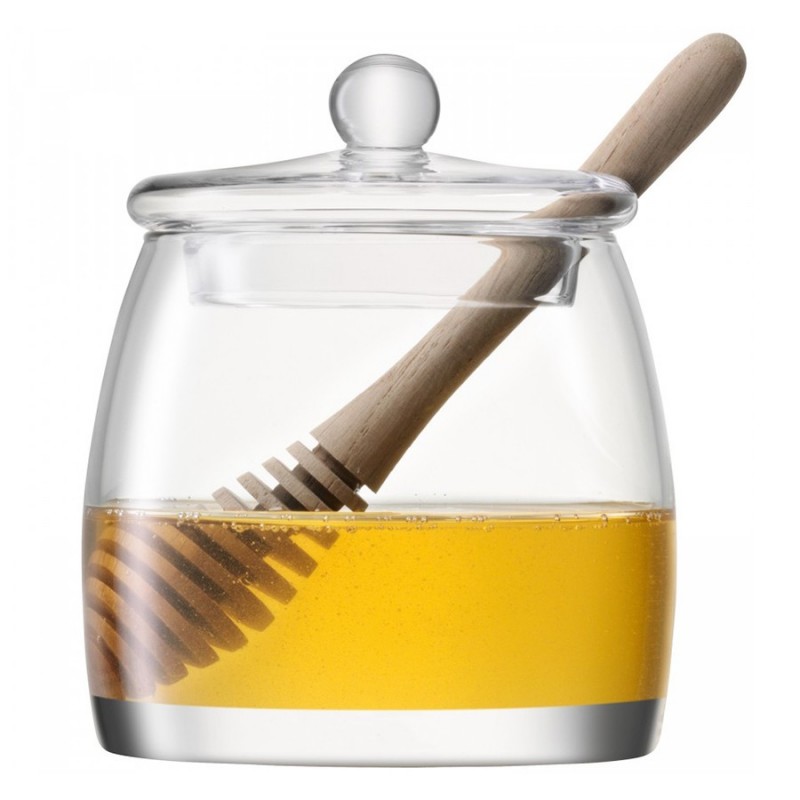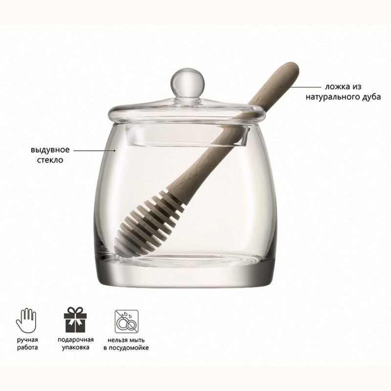 Банка для меда Serve, выполненная из выдувного стекла, идеально подойдет для хранения вашего любимого лакомства. В комплекте предусмотрена деревянная ложка специальной формы, которая позволяет удобно набирать необходимое количество вязкой массы и перемещать ее в нужную емкость.Serve — это элегантные формы, подчеркнутые кристальным блеском стекла ручной работы. Предметы коллекции подходят для сервировки в различных стилях. Линейка придется по душе всем, кто любит красивую и практичную посуду.Важно! Поскольку банка изготавливается вручную, ее размер может незначительно отличаться и допускается наличие пузырьков в толще стекла: круглые < 3 мм, овальные < 5 мм и их небольшие скопления в виде пены. Также возможно наличие прожилок (видимых нитей) на стекле менее 50% длины окружности любого предмета. Все это не брак, а допустимые индивидуальные особенности товаров, произведенных ручным способом.Высота: 12,5 см. Ширина: 10,5 см. Объем: 590 мл.Банку рекомендуется мыть вручную в теплой мыльной воде и вытирать насухо мягкой тканью.