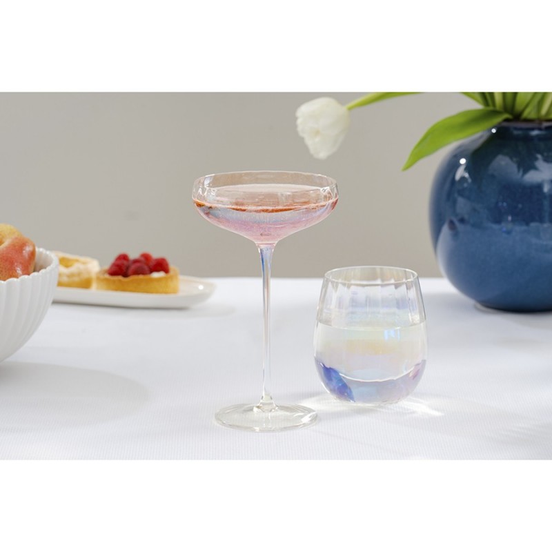 Линейка Gemma Opal привлекает лаконичным дизайном и необычным цветовым решением в виде радужных переливов. Вся посуда выполнена вручную из выдувного стекла. Такой способ производства позволяет играть с линиями и изгибами, создавая уникальные и неповторимые продукты. Изделия получаются более прочными, но при этом тоньше и прозрачнее аналогов из обычного стекла.Креманки Gemma Opal – эффектный способ подать к столу десерты или игристые напитки. В слегка волнистых стенках широкой чаши красиво преломляется свет, а удлиненная ножка делает силуэт более утонченным. Такая посуда создает праздничное настроение даже во время обычного приема пищи. Материал, из которого выполнены изделия, долговечный, не требует сложного ухода. Комбинируйте предметы из одноименной линейки – декантер, бокалы, стаканы для воды, чтобы создать завершенную композицию и удивить гостей изысканной сервировкой.Наши продукты прошли испытания на отсутствие в составе свинца и кадмия в соответствии со стандартными тестами FDA.Материал: выдувное стекло. Размеры: 10,7х10,7х18,6 см. Объем: 255 мл. Количество в наборе: 2 шт.Рекомендовано ручное мытье с помощью мягкой губки с жидким чистящим средством.