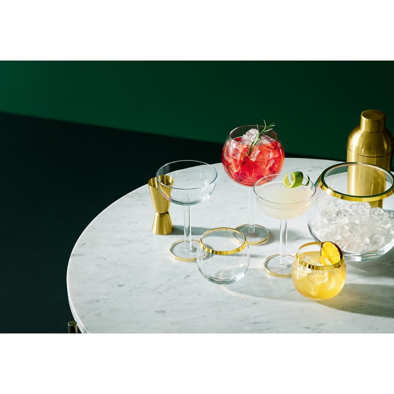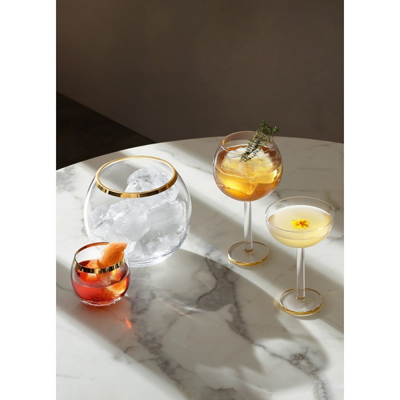 Креманки Luca станут не просто функциональным элементом сервировки, но и украшением любого стола. Изделия из этой коллекции выглядят стильно и эффектно – при каждом движении, свет играет на поверхности стекла, а золотистые акценты усиливают его сияние. Креманки идеально подойдут для подачи шампанского и коктейлей.Особенности и преимущества:- Выдувное стекло прочнее, легче и прозрачнее обычного, благодаря чему изделия из него являются практичными, долговечными и имеют презентабельный вид. - Креманки с большой округлой чашей и утолщенной трубчатой ножкой смотрятся необычно и удобно ложатся в руку. - Плавность линий и нанесенный вручную золотистый декор делают посуду из этой коллекции настоящим украшением любой сервировки.Luca – коллекция посуды необычной округлой формы с минималистичным декором в виде золотистой каймы, выполненная из выдувного стекла ручным способом.Важно! Поскольку изделия изготавливаются вручную, их размеры могут незначительно отличаться и допускается наличие пузырьков в толще стекла: круглые < 3 мм, овальные < 5 мм и их небольшие скопления в виде пены. Также возможно наличие прожилок (видимых нитей) на стекле менее 50% длины окружности любого предмета. Все это не брак, а допустимые индивидуальные особенности товаров, произведенных ручным способом.Материал: выдувное стекло. Объем: 200 мл. Размеры: 10,5х10,5х15,5 см. Количество в наборе: 2 шт.Креманки рекомендуется мыть вручную в теплой мыльной воде, после чего протирать сухой мягкой тканью.