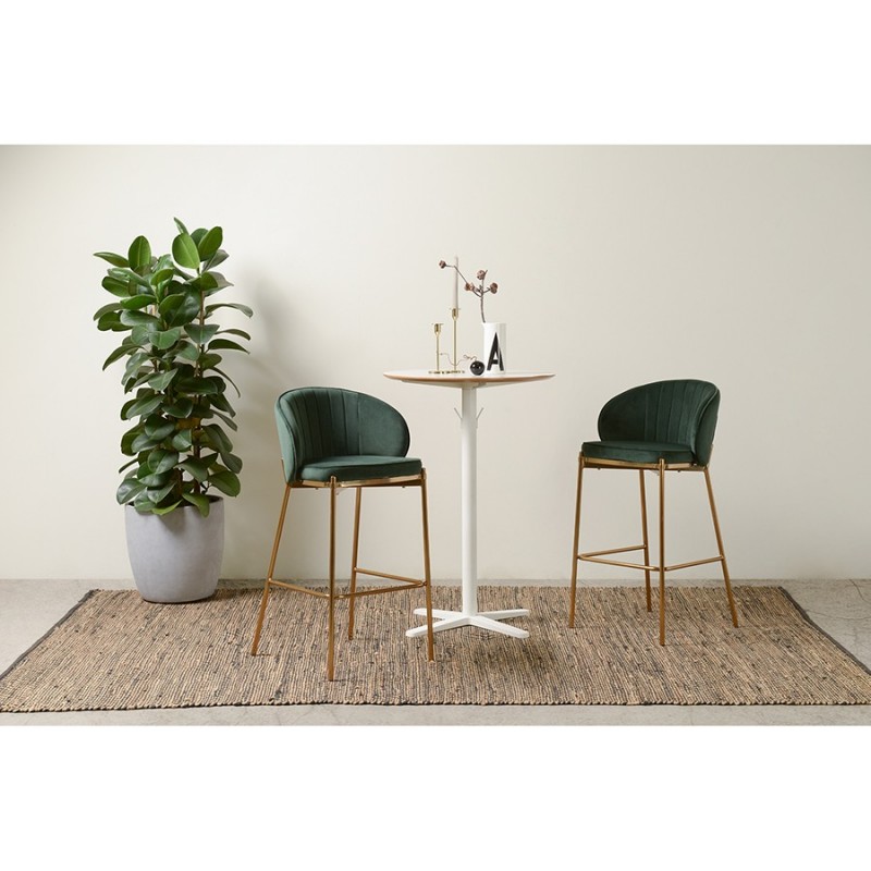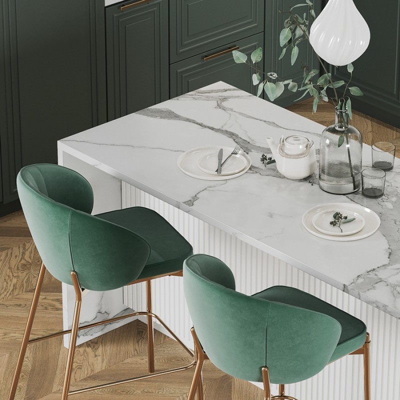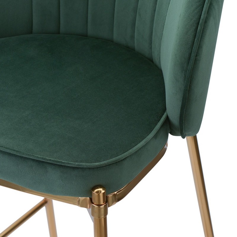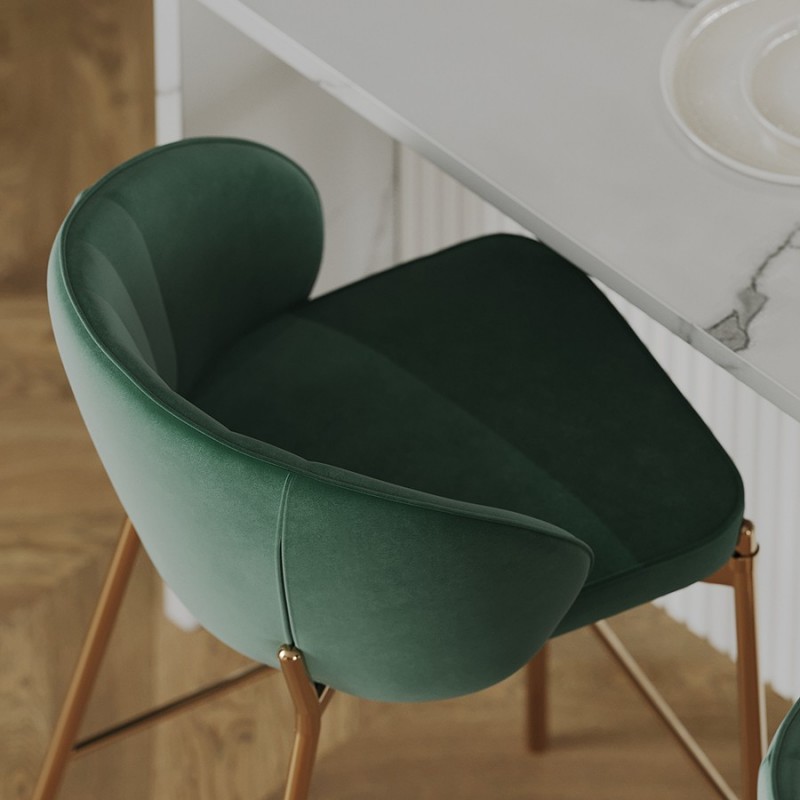 Стул Coral создаст условия для погружения в мир комфорта и элегантности и поможет придать интерьеру изысканный вид. Этот стильный предмет мебели станет идеальным дополнением кухонного острова, барной зоны в квартире, доме, кафе или ресторане.Комфорт во время отдыха на барном стуле создается за счет мягкого сиденья с наполнителем из пенополиуретана и высокой закругленной спинки. Обивка из бархатистого велюра, украшенная декоративной строчкой, придает модели особый шарм. Эстетический потенциал материала настолько высок, что ему сложно найти конкурентов. Помимо презентабельного вида и приятных тактильных ощущений, ткань обладает хорошими эксплуатационными характеристиками, такими как прочность, износоустойчивость и долговечность. Ножки мебели выполнены из стали, что обеспечивает конструкции надежность и защиту от коррозии.Стул барный Coral станет отличным выбором для поклонников стилей поп-арт, неоклассика, гранж, прованс, фьюжн или лаунж.Материалы: сталь, фанера, 100% полиэстер, пенополиуретан. Размеры: 52х53х102 см. Высота сиденья: 78 см. Ширина сиденья: 43 см. Глубина сиденья: 36 см. Высота спинки: 28 см. Ширина спинки: 36 см. Высота подножки: 31 см. Максимальная нагрузка: 120 кг. Цвет: темно-зеленый.Рекомендуется регулярно пылесосить мебель с помощью специальной насадки – резиновой или мягкой щетки. Образовавшиеся пятна можно удалять губкой или салфеткой со слабым мыльным раствором воды. Запрещается использовать абразивные материалы и агрессивную бытовую химию.