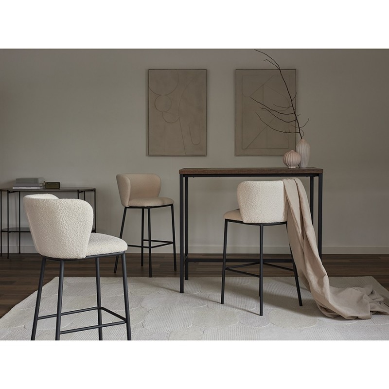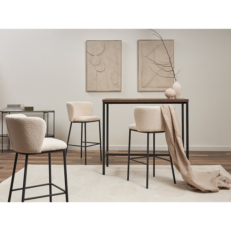 Стул барный Foggy поможет организовать уютное пространство, где каждая деталь приносит радость и вдохновение. Мягкие завитки обивки “букле” создают изящный силуэт с ноткой игривости. Каждое прикосновение к ткани приносит ощущение легкости и нежности, словно вы сидите на облаке.Особенности и преимущества:- Обивка из буклированной ткани придает мебели элегантный и уютный вид, не требует сложного ухода и долго сохраняет первоначальные свойства. - Мягкое сиденье с наполнителем из пенополиуретана, подставка для ног и высокая, закругленная спинка позволяют долго сидеть на стуле без чувства усталости. - Ножки из прочного железа имеют износостойкое порошковое покрытие, которое защищает их поверхность от коррозии и внешних воздействий. - Стул Foggy прекрасно подходит как для классических, так и современных интерьеров.Материалы: железо, фанера, 100% полиэстер, пенополиуретан. Размеры: 53,5х53х99 см. Высота сиденья: 70 см. Ширина сиденья: 46 см. Глубина сиденья: 42 см. Высота спинки: 28,5 см. Ширина спинки: 44 см. Высота подлокотников: 25 см. Высота подножки: 30 см. Максимальная нагрузка: 120 кг. Цвет: молочный.Рекомендуется регулярно пылесосить мебель с помощью специальной насадки – резиновой или мягкой щетки. Образовавшиеся пятна можно удалять губкой или салфеткой со слабым мыльным раствором воды. Запрещается использовать абразивные материалы и агрессивную бытовую химию.