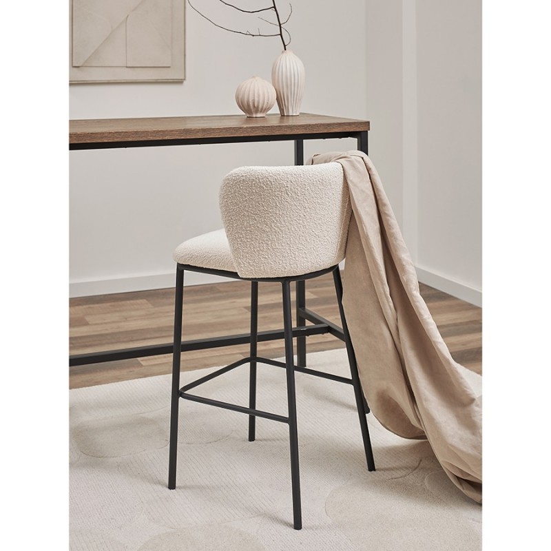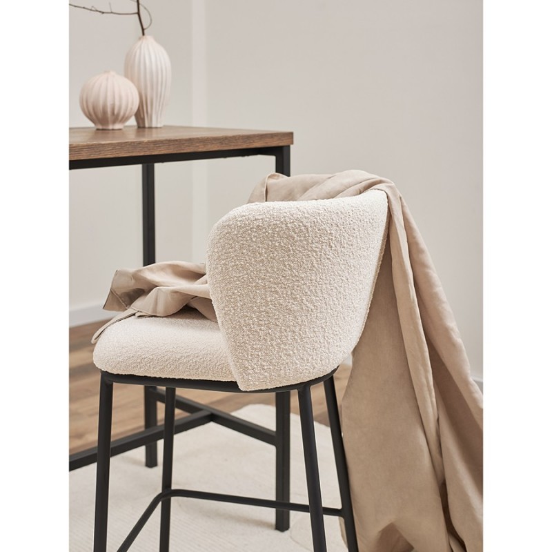 Стул барный Foggy поможет организовать уютное пространство, где каждая деталь приносит радость и вдохновение. Мягкие завитки обивки “букле” создают изящный силуэт с ноткой игривости. Каждое прикосновение к ткани приносит ощущение легкости и нежности, словно вы сидите на облаке.Особенности и преимущества:- Обивка из буклированной ткани придает мебели элегантный и уютный вид, не требует сложного ухода и долго сохраняет первоначальные свойства. - Мягкое сиденье с наполнителем из пенополиуретана, подставка для ног и высокая, закругленная спинка позволяют долго сидеть на стуле без чувства усталости. - Ножки из прочного железа имеют износостойкое порошковое покрытие, которое защищает их поверхность от коррозии и внешних воздействий. - Стул Foggy прекрасно подходит как для классических, так и современных интерьеров.Материалы: железо, фанера, 100% полиэстер, пенополиуретан. Размеры: 53,5х53х99 см. Высота сиденья: 70 см. Ширина сиденья: 46 см. Глубина сиденья: 42 см. Высота спинки: 28,5 см. Ширина спинки: 44 см. Высота подлокотников: 25 см. Высота подножки: 30 см. Максимальная нагрузка: 120 кг. Цвет: молочный.Рекомендуется регулярно пылесосить мебель с помощью специальной насадки – резиновой или мягкой щетки. Образовавшиеся пятна можно удалять губкой или салфеткой со слабым мыльным раствором воды. Запрещается использовать абразивные материалы и агрессивную бытовую химию.