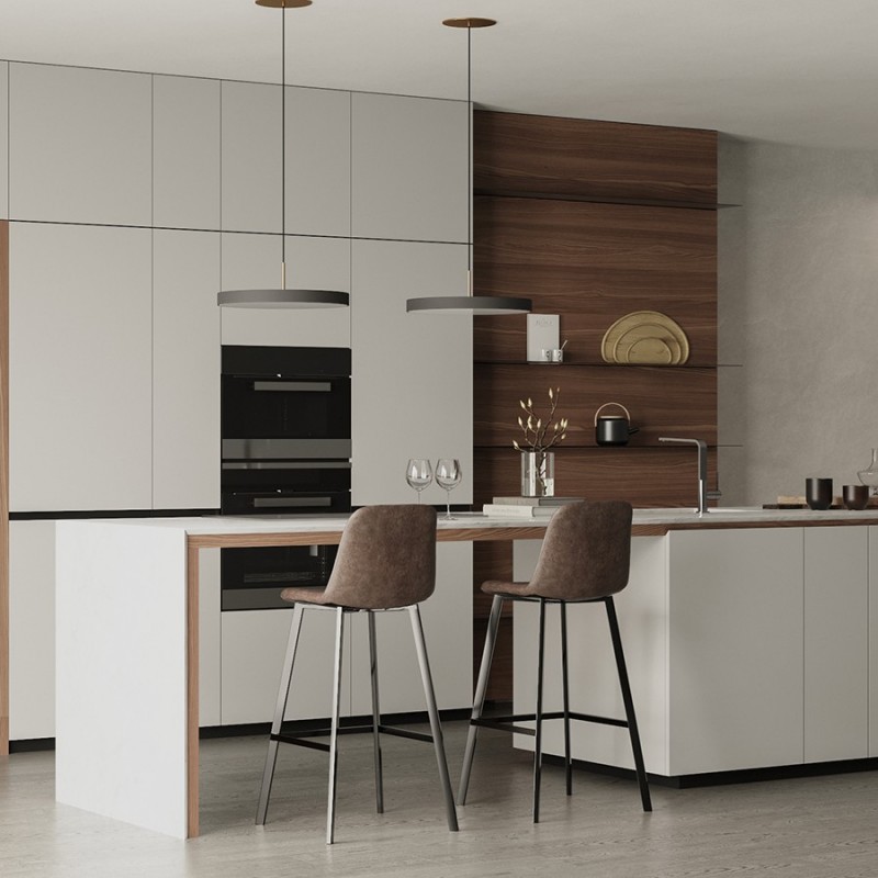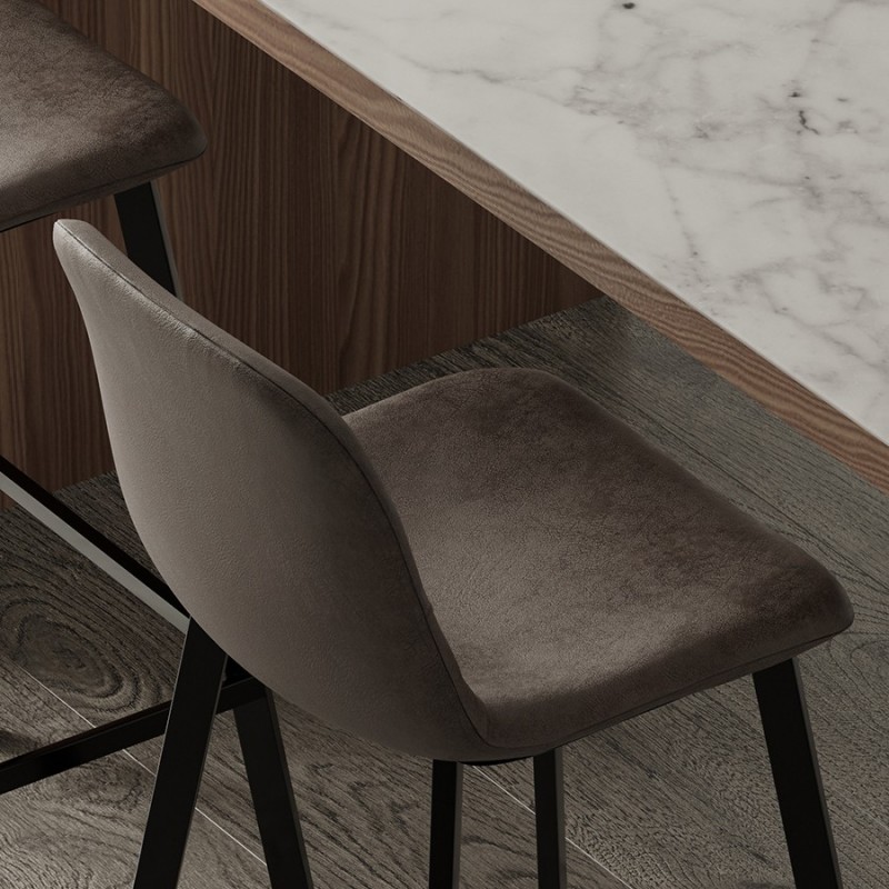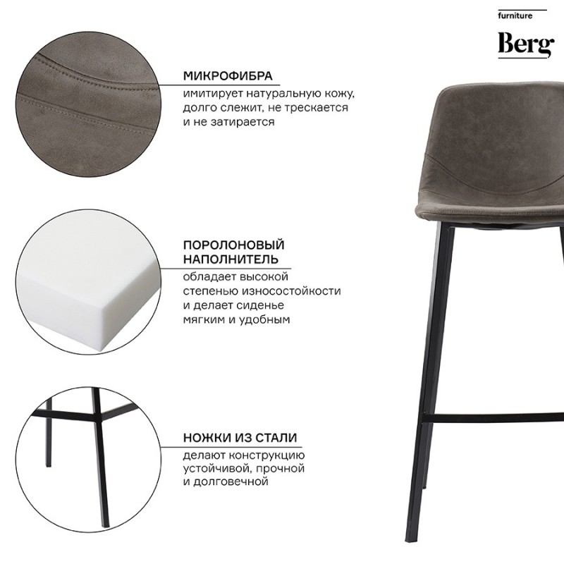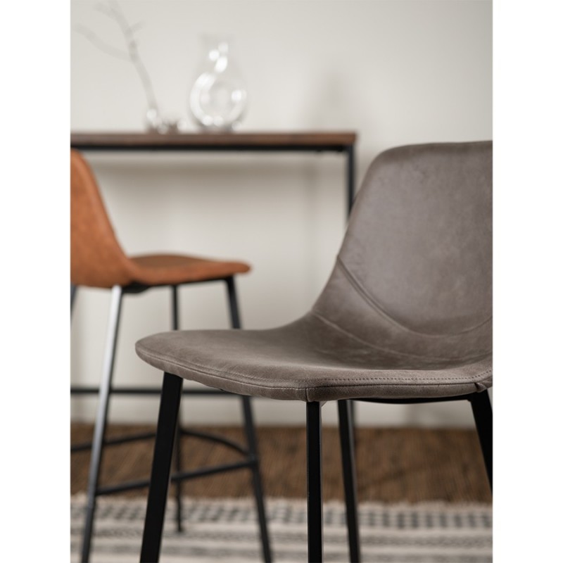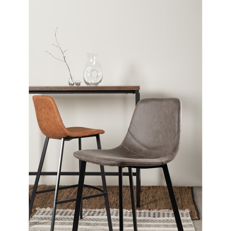 Стул барный Hugh с обивкой из экокожи отличается солидным видом и высокими показателями практичности. Этот стильный предмет мебели – отличный вариант для домашнего бара, кафе и ресторана с современным интерьером.Сиденье стула плавно переходит в спинку с оптимальным углом наклона, что обеспечивает комфортное размещение на протяжении длительного времени без чувства усталости. Дополнительное удобство при сидении достигается за счет наличия специальной подставки для ног. Материал обивки имеет привлекательный вид, обладает хорошими эксплуатационными характеристиками, такими как прочность, простой уход и долгий срок службы. Ножки из стали делают конструкцию устойчивой.Благодаря простому, лаконичному дизайну модель органично вписывается в различные дизайнерские решения.Материалы: полиэстер, фанера, пенополиуретан, сталь. Размеры: 47х50х99 см. Цвет: серо-коричневый.Любые загрязнения с обивки из экокожи рекомендуется убирать сразу при помощи влажной ткани. Засохшую грязь требуется сначала размочить, после чего удалить мягким материалом. Запрещается применение жестких щеток, абразивов и агрессивной бытовой химии.