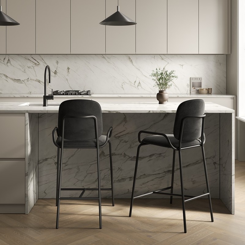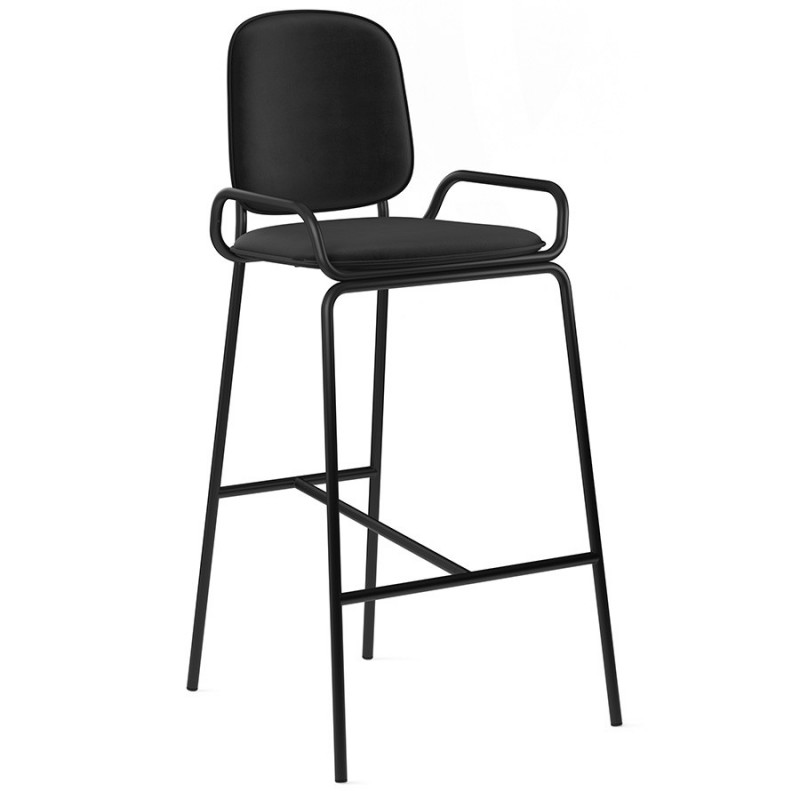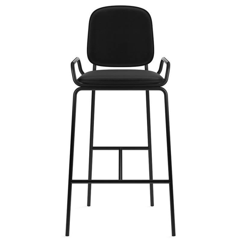 Коллекция Ror – это мебель с индивидуальным характером. Отправной точкой создания линейки стало динамичное движение, воплощенное в логотипе Олимпиады 80, где беговые дорожки образуют силуэт Спасской башни.Стул барный Double Frame имеет удобную посадку за счет высокой спинки и широкого основания. Ножки плавно переходят в подлокотники и в нижней части соединяются металлической рамой, которая служит подставкой для ног. Такое дизайнерское решение создает дополнительный комфорт во время сидения.Стальной каркас с порошковым покрытием делает конструкцию прочной и надежной, а мягкий велюр с бархатистой текстурой обеспечивает приятные тактильные ощущения. Используемый в качестве наполнителя пенополиуретан отличается оптимальной плотностью и жесткостью. Все материалы отвечают высоким стандартам практичности, долговечности и экологической безопасности.Стул украсит интерьер кафе и ресторана, а также прекрасно подойдет для оформления барной стойки и кухонного острова в доме или квартире.Материалы: сталь, фанера, 100% пенополиуретан, 100% полиэстер. Размеры: 54х56,9х108,4 см. Максимальная нагрузка: 136 кг. Цвет: черный/черный.Загрязнения удалять с поверхностей мыльным раствором воды при помощи мягкой губки или салфетки.