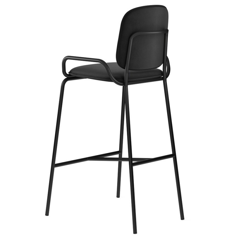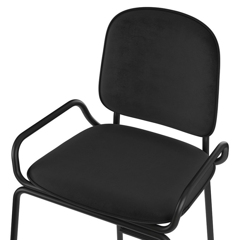 Коллекция Ror – это мебель с индивидуальным характером. Отправной точкой создания линейки стало динамичное движение, воплощенное в логотипе Олимпиады 80, где беговые дорожки образуют силуэт Спасской башни.Стул барный Double Frame имеет удобную посадку за счет высокой спинки и широкого основания. Ножки плавно переходят в подлокотники и в нижней части соединяются металлической рамой, которая служит подставкой для ног. Такое дизайнерское решение создает дополнительный комфорт во время сидения.Стальной каркас с порошковым покрытием делает конструкцию прочной и надежной, а мягкий велюр с бархатистой текстурой обеспечивает приятные тактильные ощущения. Используемый в качестве наполнителя пенополиуретан отличается оптимальной плотностью и жесткостью. Все материалы отвечают высоким стандартам практичности, долговечности и экологической безопасности.Стул украсит интерьер кафе и ресторана, а также прекрасно подойдет для оформления барной стойки и кухонного острова в доме или квартире.Материалы: сталь, фанера, 100% пенополиуретан, 100% полиэстер. Размеры: 54х56,9х108,4 см. Максимальная нагрузка: 136 кг. Цвет: черный/черный.Загрязнения удалять с поверхностей мыльным раствором воды при помощи мягкой губки или салфетки.
