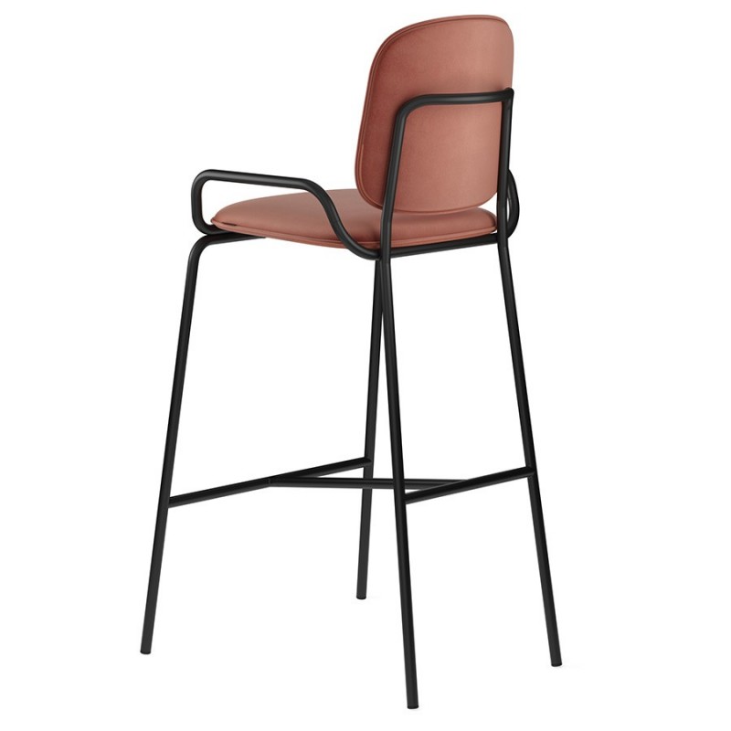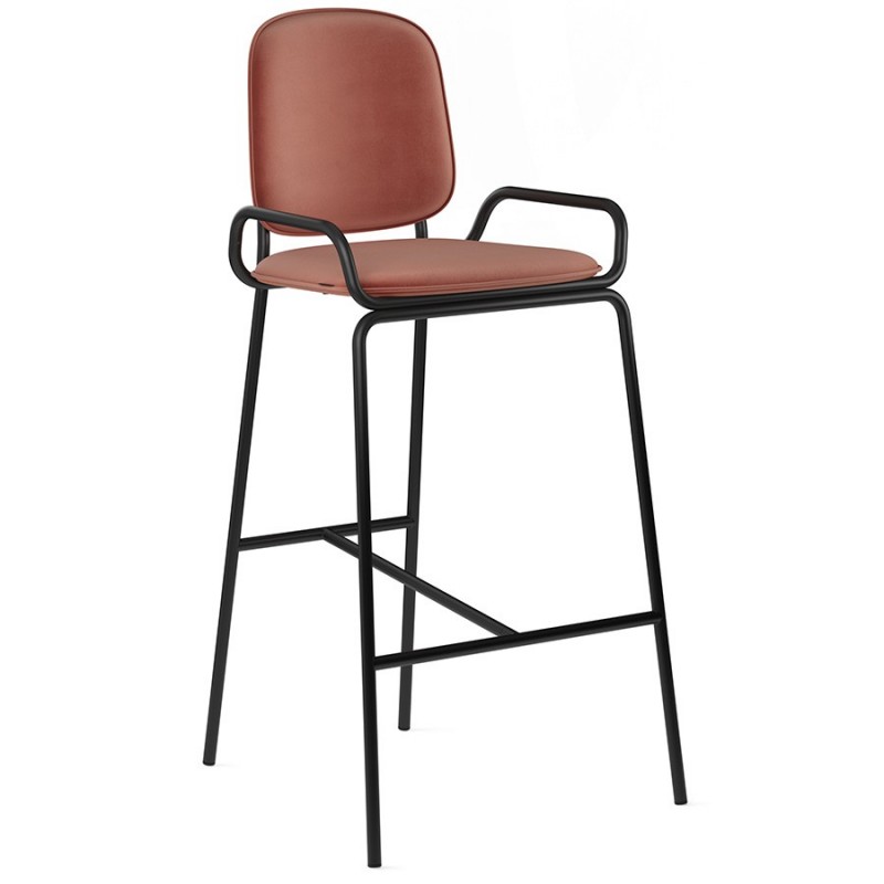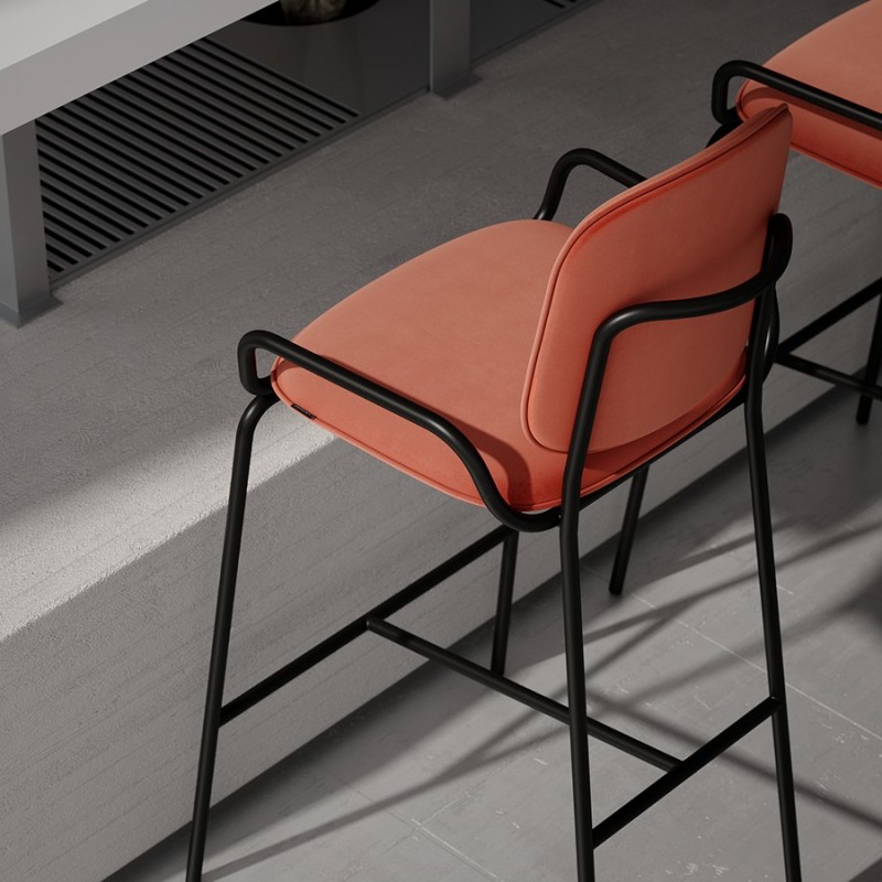 Коллекция Ror – это мебель с индивидуальным характером. Отправной точкой создания линейки стало динамичное движение, воплощенное в логотипе Олимпиады 80, где беговые дорожки образуют силуэт Спасской башни.Стул барный Double Frame имеет удобную посадку за счет высокой спинки и широкого основания. Ножки плавно переходят в подлокотники и в нижней части соединяются металлической рамой, которая служит подставкой для ног. Такое дизайнерское решение создает дополнительный комфорт во время сидения.Стальной каркас с порошковым покрытием делает конструкцию прочной и надежной, а мягкий велюр с бархатистой текстурой обеспечивает приятные тактильные ощущения. Используемый в качестве наполнителя пенополиуретан отличается оптимальной плотностью и жесткостью. Все материалы отвечают высоким стандартам практичности, долговечности и экологической безопасности.Стул украсит интерьер кафе и ресторана, а также прекрасно подойдет для оформления барной стойки и кухонного острова в доме или квартире.Материалы: сталь, фанера, 100% пенополиуретан, 100% полиэстер. Размеры: 54х56,9х108,4 см. Максимальная нагрузка: 136 кг. Цвет: черный/темно-красный.Загрязнения удалять с поверхностей мыльным раствором воды при помощи мягкой губки или салфетки.