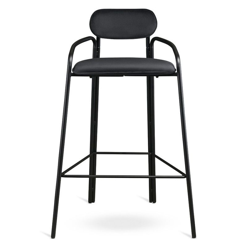 Коллекция Ror - это мебель с индивидуальным характером.Каркас барного стула Round состоит из трех стремящихся вверх элементов, которые образуют округлый, словно окутывающий корпус. За счет отсутствия прямых углов создается легкий, гармоничный силуэт. Стальное основание с порошковым покрытием делает конструкцию прочной и надежной, а мягкий велюр с бархатистой текстурой обеспечивает тактильный комфорт. Ткань обивки обладает высокими показателями износостойкости. Используемый в качестве наполнителя пенополиуретан отличается комфортной плотностью и жесткостью. Все материалы отвечают высоким стандартам практичности, долговечности и экологической безопасности. Стул украсит собой любой современный интерьер: подойдет для оформления кухни, барной зоны в кафе и ресторане.Материалы: сталь, фанера, 100% пенополиуретан, 100% полиэстер. Размеры: 54х61х100 см. Высота сиденья: 77 см. Ширина сиденья: 41 см. Глубина сиденья: 41 см. Высота спинки: 24 см. Ширина спинки: 31 см. Максимальная нагрузка: 102 кг. Цвет: черный/черный.Загрязнения удалять с поверхностей мыльным раствором воды при помощи мягкой губки или салфетки.