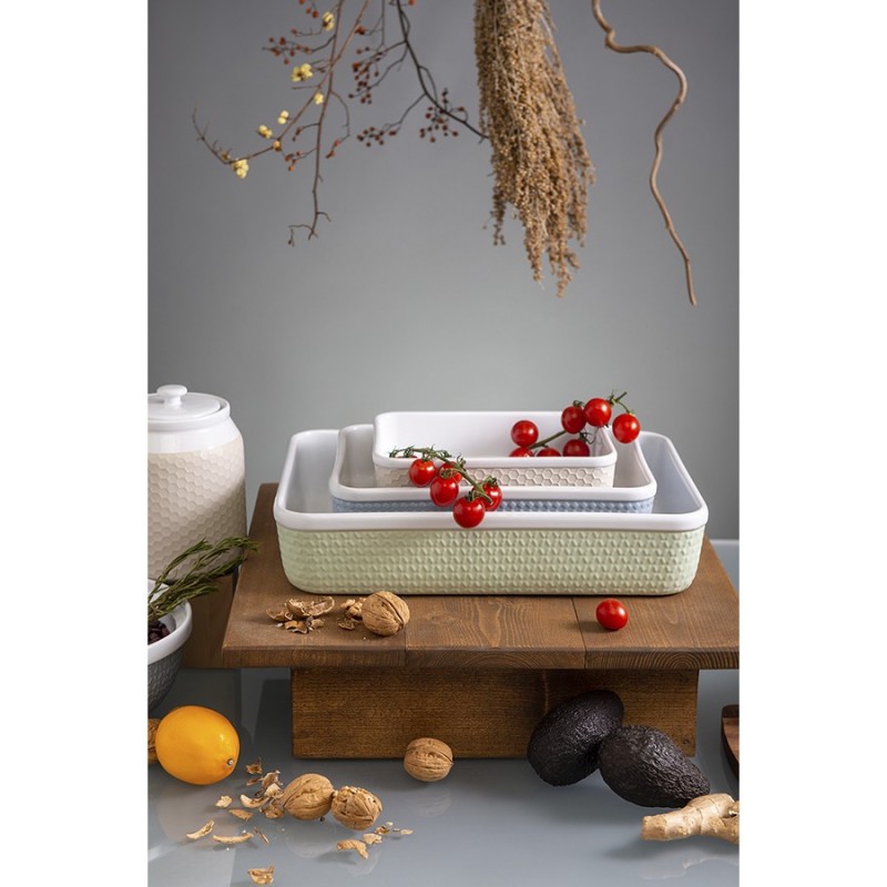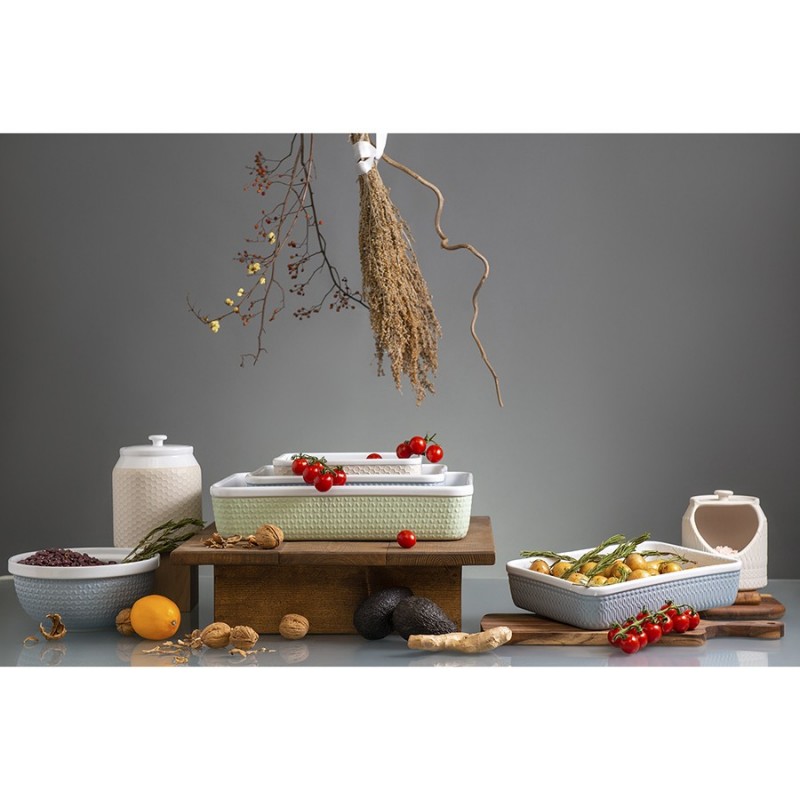 Коллекция посуды Marshmallow привнесет в ваш дом ощущение тепла, поможет создать идеальную атмосферу для приема гостей и уютных семейных застолий.Емкость для запекания Marshmallow – прекрасный вариант для приготовления в духовке десертов, а также блюд из рыбы, мяса и овощей. Изделие выполнено из высококачественной каменной керамики, покрытой специальной глазурью. Материал экологичный, имеет высокую степень устойчивости к повреждениям и легко моется, что делает эту посуду идеальным выбором для ежедневного использования.Наши продукты прошли испытания на отсутствие в составе свинца и кадмия в соответствии со стандартными тестами FDA.Материал: каменная керамика. Размеры: 37х26,8х7,5 см. Объем: 4,85 л. Цвет: мятный.Посуду рекомендуется очищать от загрязнений в теплой воде с помощью мягкой губки с жидким средством. Допускается мытье в посудомоечной машине, использование в морозильной камере, микроволновке, духовке при температуре до 230 °C.