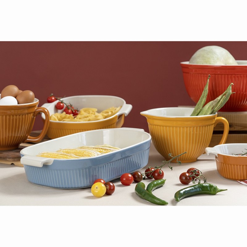 Емкость для запекания серии Soft Ripples из жаропрочной каменной керамики идеально подходит для приготовления выпечки, а также тушения и томления продуктов. За счет быстрого и равномерного прогревания формы блюда хорошо пропекаются, получаются сочными и сверху покрываются аппетитной корочкой. Наличие ручек обеспечивает аккуратное извлечение готовой пищи из духовки и удобное ее перемещение. Благодаря природным антипригарным свойствам материала не требуется добавление большого количества масла. Керамическая посуда является экологичной, не деформируется, не впитывает запахи и загрязнения. Рельефный узор на внешней поверхности стенок и интересное цветовое сочетание делают дизайн оригинальным.Наши продукты прошли испытания на отсутствие в составе свинца и кадмия в соответствии со стандартными тестами FDA.Материал: каменная керамика. Размеры: 35,9х23,3 см. Объем: 2,5 л. Цвет: карамельный.Допускается мытье в посудомоечной машине, заморозка, использование в микроволновой печи и духовке при температуре не выше 230 °C.