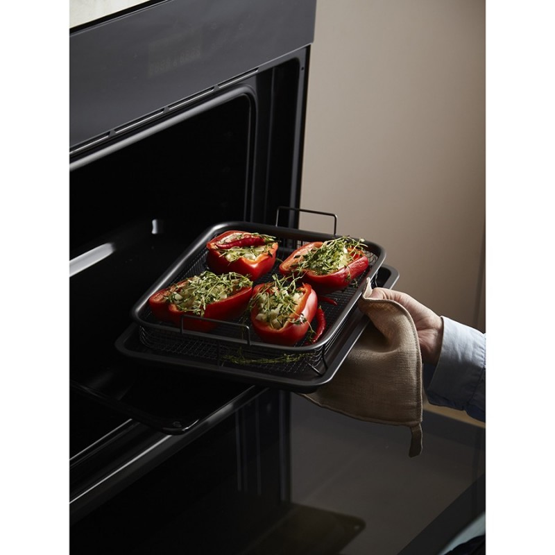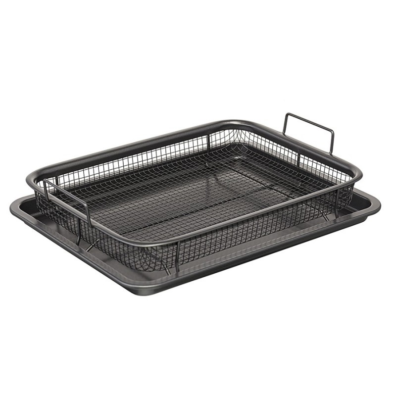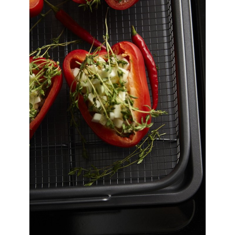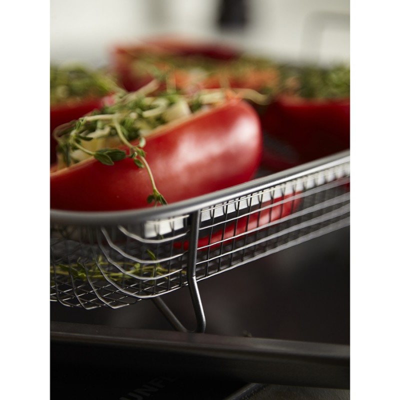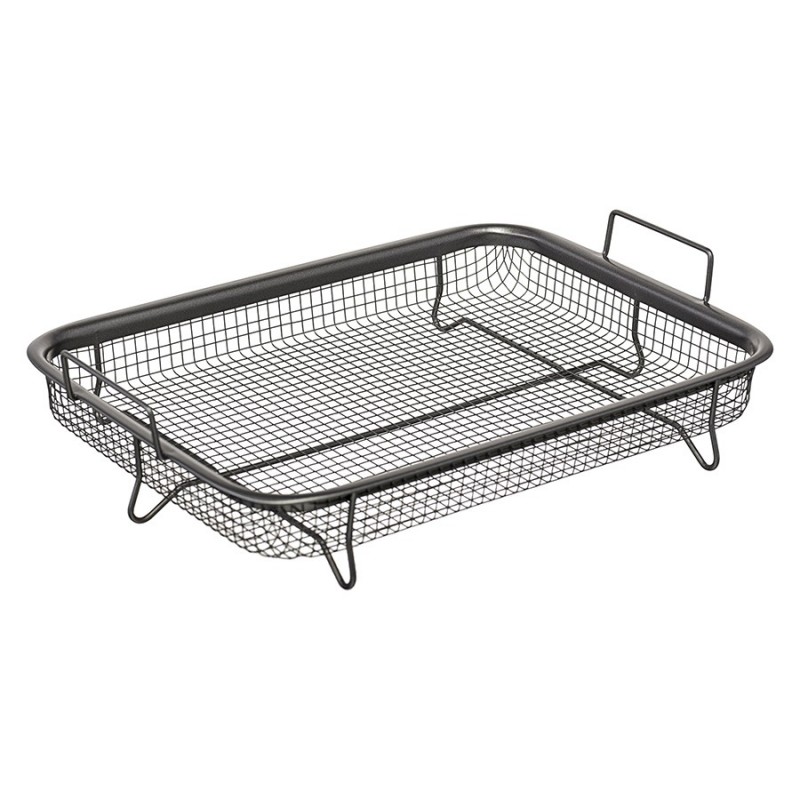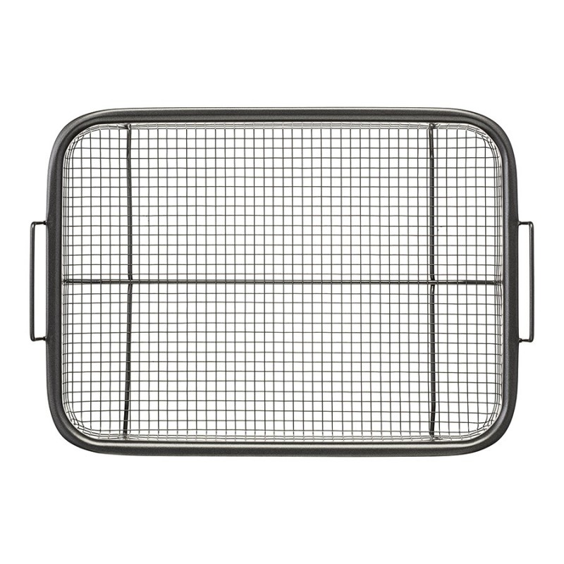 Противень с решеткой-гриль Roast Masters поможет вашему кулинарному мастерству выйти на новый уровень. Используя эту посуду для запекания, вы получите сочные, ароматные блюда и сможете готовить практически без масла и жира.Особенности и преимущества:- В противне из углеродистой стали тепло распределяется равномерно по всей поверхности, обеспечивая качественное пропекание блюд. - Решетка из нержавеющей стали AISI 201 устойчива к деформации и повреждениям. - Противень и решетка выдерживают нагревание до 220 градусов, имеют двухслойное антипригарное покрытие премиального качества, которое не содержит PFOA и абсолютно безопасно для здоровья. - Решетка на ножках обеспечивает циркуляцию жара 360°, что позволяет продуктам запекаться со всех сторон. Для получения хрустящей корочки рекомендуем использовать режим конвекции.Материалы: углеродистая сталь, нержавеющая сталь AISI 201. Размеры противня: 30,3х22,2х2,3 см. Размеры решетки: 28,3х20,6х3,2 см.Можно мыть в посудомоечной машине. Запрещается использование абразивных материалов и агрессивной бытовой химии.