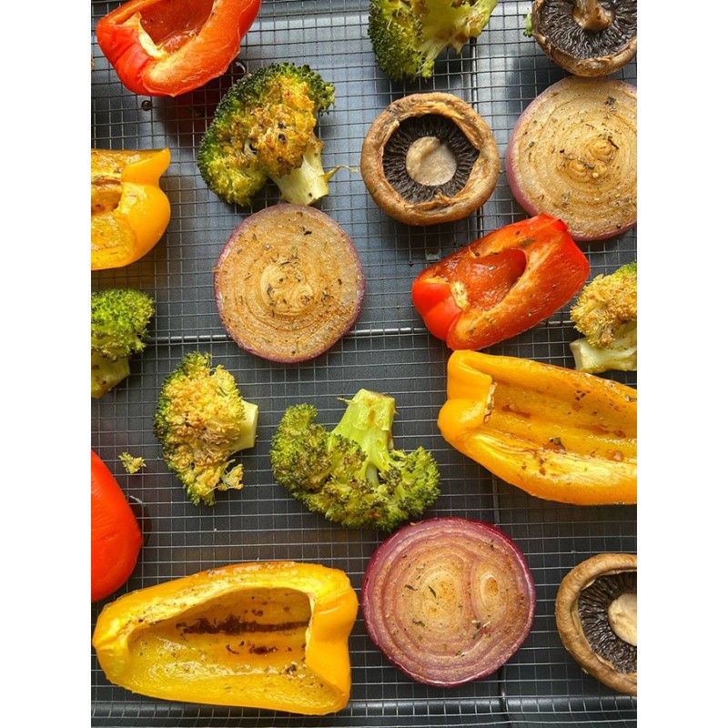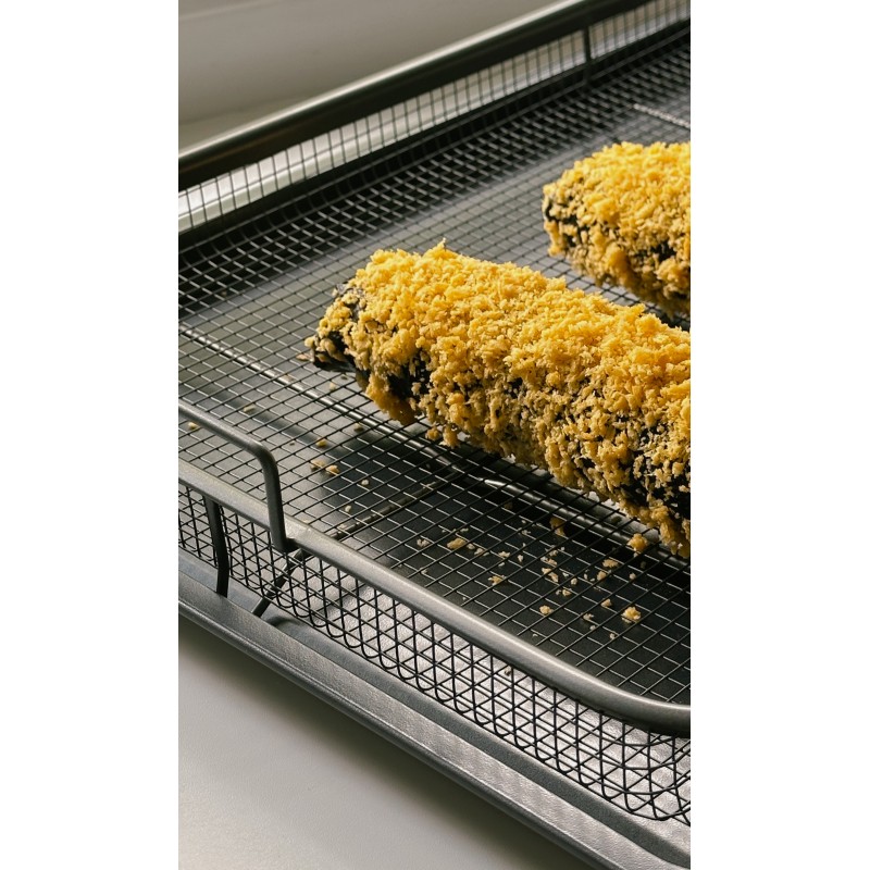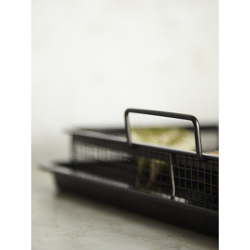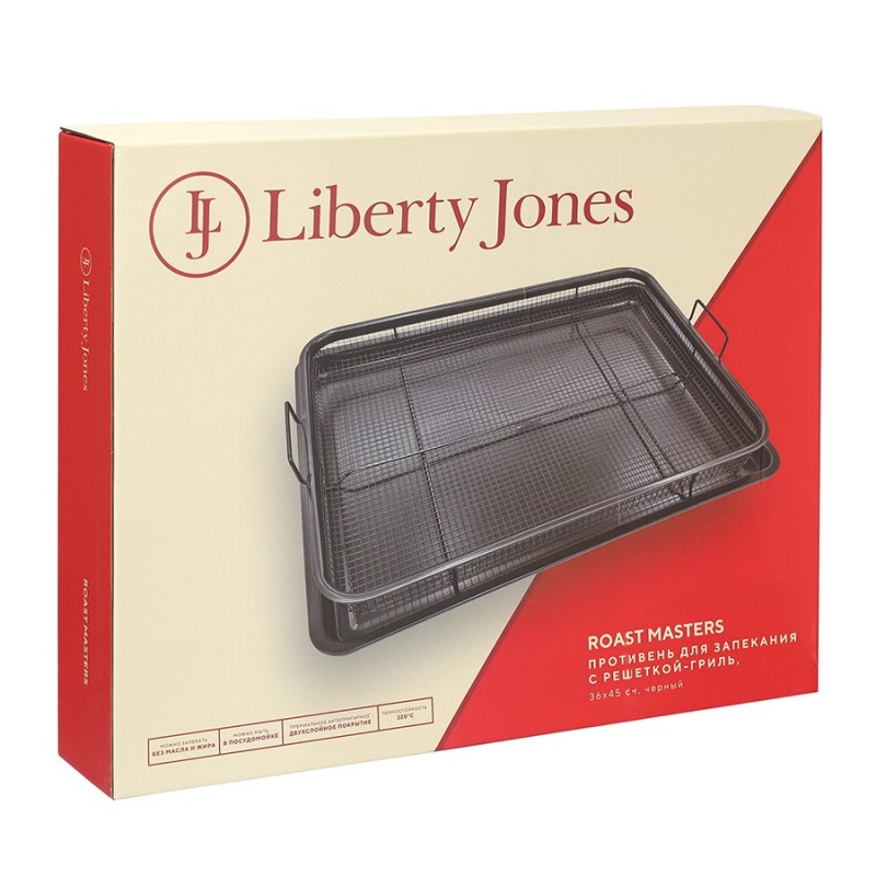 Противень с решеткой-гриль Roast Masters поможет вашему кулинарному мастерству выйти на новый уровень. Используя эту посуду для запекания, вы получите сочные, ароматные блюда и сможете готовить практически без масла и жира.Особенности и преимущества:- В противне из углеродистой стали тепло распределяется равномерно по всей поверхности, обеспечивая качественное пропекание блюд. - Решетка из нержавеющей стали AISI 201 устойчива к деформации и повреждениям. - Противень и решетка выдерживают нагревание до 220 градусов, имеют двухслойное антипригарное покрытие премиального качества, которое не содержит PFOA и абсолютно безопасно для здоровья. - Решетка на ножках обеспечивает циркуляцию жара 360°, что позволяет продуктам запекаться со всех сторон. Для получения хрустящей корочки рекомендуем использовать режим конвекции.Материалы: углеродистая сталь, нержавеющая сталь AISI 201. Размеры противня: 45х36х2,2 см. Размеры решетки: 42,8х33,8х5,6 см.Можно мыть в посудомоечной машине. Запрещается использование абразивных материалов и агрессивной бытовой химии.