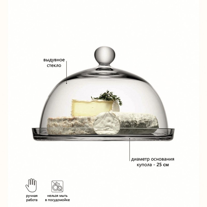 Оригинальное блюдо Vienna с крышкой в виде стеклянной прозрачной полусферы идеально подойдет для подачи выпечки, закусок и всевозможных десертов. Такой аксессуар придется по душе всем, кто предпочитает наслаждаться красивой посудой даже в классической домашней сервировке стола для завтраков, обедов и ужинов.Важно! Поскольку изделия изготавливаются вручную, их размер может незначительно отличаться и допускается наличие пузырьков в толще стекла: круглые < 3 мм, овальные < 5 мм и их небольшие скопления в виде пены. Также возможно наличие прожилок (видимых нитей) на стекле менее 50% длины окружности любого предмета. Все это не брак, а допустимые индивидуальные особенности товаров, произведенных ручным способом.Материал: выдувное стекло. Диаметр: 25 см. Высота: 18 см.Блюдо рекомендуется мыть вручную в теплой мыльной воде и вытирать насухо мягкой тканью.