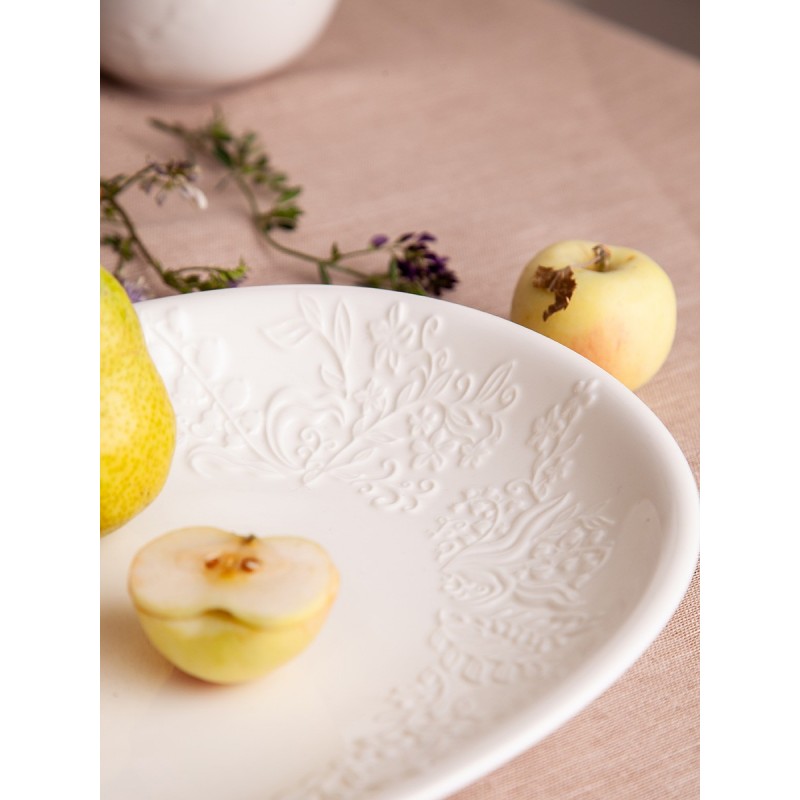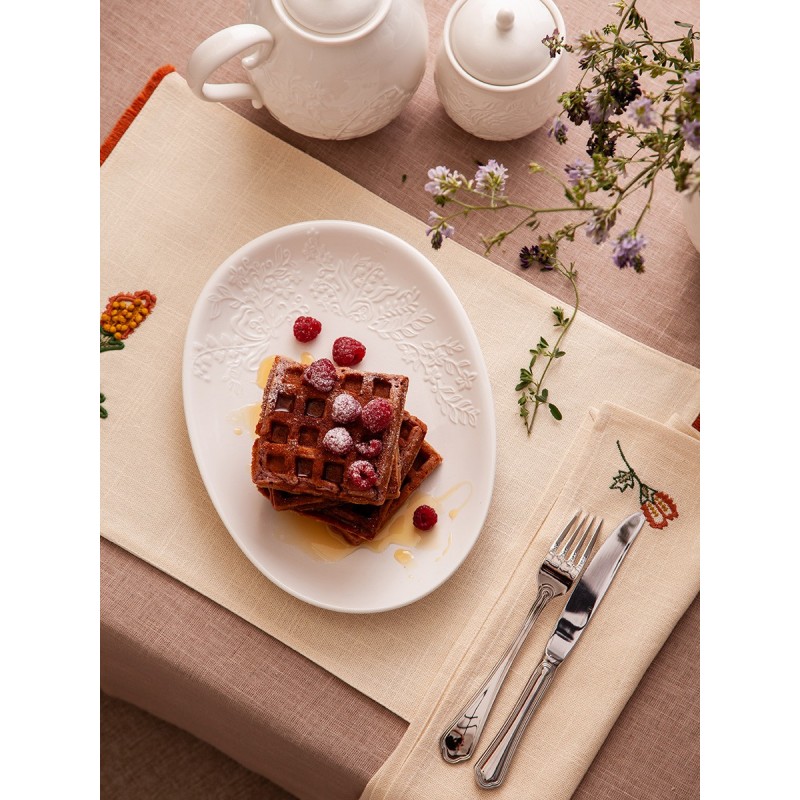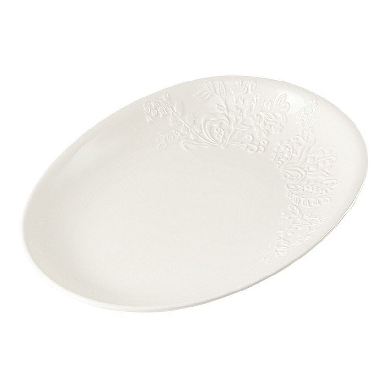 Тарелка сервировочная English Gardens – выбор настоящих эстетов и возможность привнести в оформление стола частичку природной элегантности. Плавные линии, мягкие формы и утонченный цветочный узор создают ощущение свежести и легкости, а белый цвет фарфора привлекает своей безупречностью и чистотой.Особенности и преимущества:- Тарелка сервировочная идеально подходит как для повседневного использования, так и для особых случаев. - Чистое сырье высочайшего качества и собственная формула глазуровки с обжигом при температуре 1250 °C делают изделие из фарфора особо прочным, устойчивым к растрескиванию и появлению сколов. - Глазурь и декор не тускнеют со временем, сохраняя первоначальный цвет и блеск. - Продукт прошел испытание на отсутствие в составе свинца и кадмия в соответствии со стандартными тестами FDA. - Коллекция English Gardens вдохновляет на творчество в сервировке, позволяя легко экспериментировать с цветами, текстурами и стилями, создавая красивые композиции и особую атмосферу за столом.Материал: фарфор. Размеры: 30x22x4,5 см. Вес: 860 г.Можно мыть в посудомоечной машине в деликатном режиме с использованием мягких моющих средств.