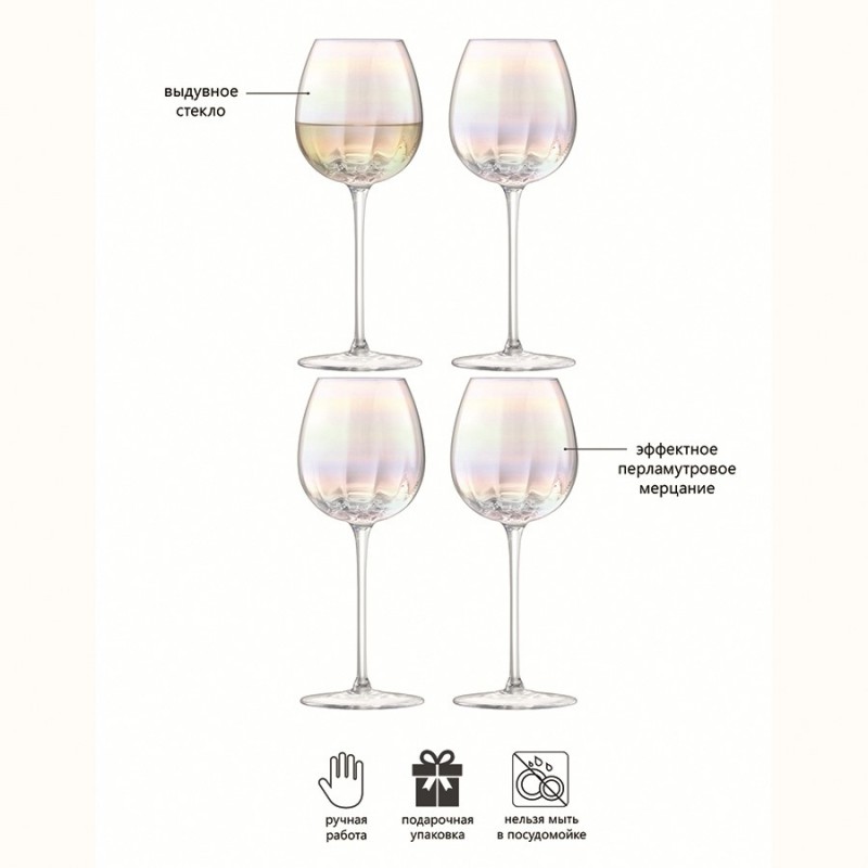 Бокалы для белого вина Pearl – стильная посуда для напитков, изготовленная из выдувного стекла с жемчужным отливом. Этот набор станет прекрасным дополнением к сервировке в любом стиле. Особенно эффектно такие бокалы будут смотреться с аксессуарами той же серии.При создании коллекции Pearl дизайнеры вдохновлялись природной красотой натурального жемчуга: перламутровое мерцание, совершенство форм, тонкая работа и деликатная игра света.Важно! Поскольку изделия изготавливаются вручную, их размеры могут незначительно отличаться и допускается наличие пузырьков в толще стекла: круглые < 3 мм, овальные < 5 мм и их небольшие скопления в виде пены. Также возможно наличие прожилок (видимых нитей) на стекле менее 50% длины окружности любого предмета. Все это не брак, а допустимые индивидуальные особенности товаров, произведенных ручным способом.Материал: выдувное стекло. Объем: 325 мл. Высота: 20,5 см. Ширина: 8,5 см. Количество в наборе: 4 шт.Рекомендуется мыть вручную в теплой мыльной воде и вытирать насухо мягкой тканью.