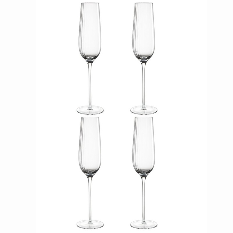 Бокалы для шампанского Alice созданы с вниманием к деталям, что позволяет им стать заметным акцентом любой сервировки.Особенности и преимущества:- Изделия выполнены из выдувного стекла ручным способом, что обеспечивает им неповторимый вид и высокие эксплуатационные характеристики. - Материал является гигиеничным, химически нейтральным, обладает прочностью, долговечностью и прекрасной прозрачностью. - Бокал имеет небольшой вес и удобно сидит в руке, что позволяет чувствовать комфорт каждый раз, как только вы его поднимаете. - Сочетание гладких и рельефных фактур делает дизайн интересным и дарит приятные тактильные ощущения.Уникальная дизайнерская коллекция Alice позволит вам окунуться в сказочную атмосферу страны чудес, где реальность превращается в фантазию, а зазеркалье открывает новые грани красоты! Каждый бокал и стакан – это неповторимое произведение искусства из выдувного стекла ручной работы. Главной особенностью линейки является необычное сочетание гладких и рельефных поверхностей, а также золотистые акценты, которые создают волшебные блики и усиливают блеск стеклянных граней.Материал: выдувное стекло. Объем: 200 мл. Количество в наборе: 4 шт.Рекомендуется очищение ручным способом при помощи мягкой губки с жидким моющим средством.