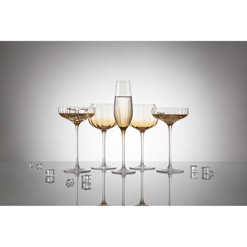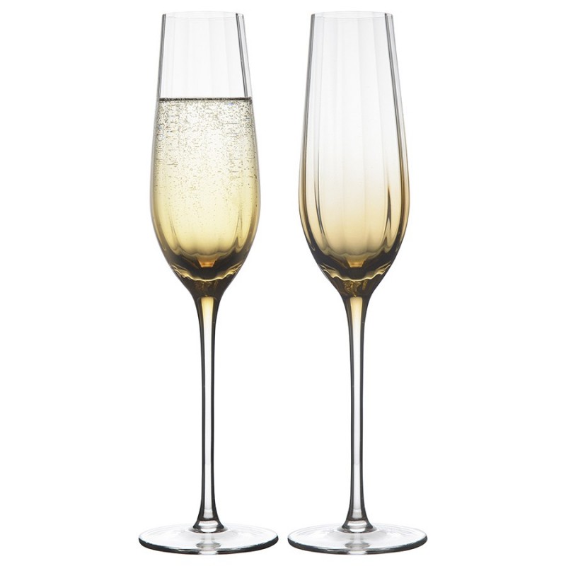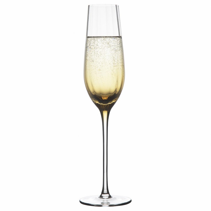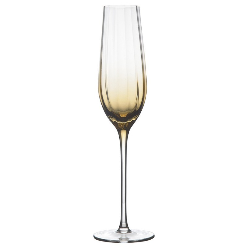 Линейка Gemma Amber привлекает лаконичным дизайном и стильным цветовым решением с теплыми янтарными акцентами. Вся посуда выполнена вручную из выдувного стекла. Такой способ производства позволяет играть с линиями и изгибами, создавая уникальные и неповторимые продукты. Изделия получаются более прочными, но при этом тоньше и прозрачнее аналогов из обычного стекла.Бокалы для шампанского Gemma Amber специальной вытянутой формы позволят дольше любоваться стройными рядами пузырьков и раскроют все тонкости вкуса и аромата игристого напитка. Узкое горло минимизирует соприкосновение жидкости с воздухом, что обеспечивает более медленное испарение углекислоты. Удлиненная ножка делает силуэт утонченным и не дает вину нагреваться от тепла руки. Материал, из которого выполнены изделия, долговечный, не требует сложного ухода. Комбинируйте предметы из одноименной линейки – декантер, бокалы, стаканы для воды, чтобы создать завершенную композицию и удивить гостей изысканной сервировкой.Наши продукты прошли испытания на отсутствие в составе свинца и кадмия в соответствии со стандартными тестами FDA.Материал: выдувное стекло. Размеры: 7,2х7,2х26,7 см. Объем: 225 мл. Количество в наборе: 2 шт.Рекомендовано ручное мытье с помощью мягкой губки с жидким чистящим средством.