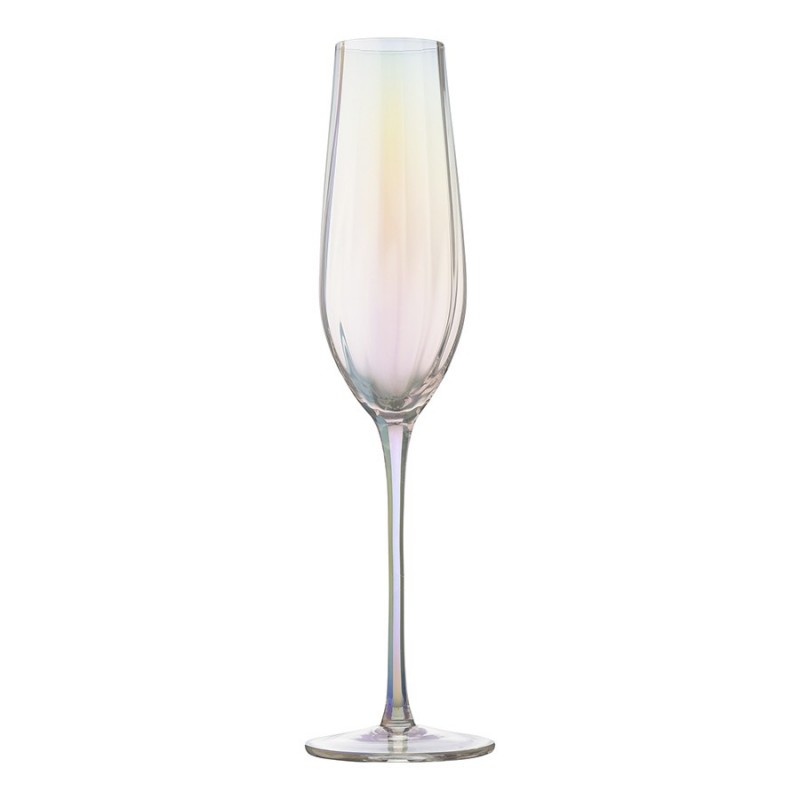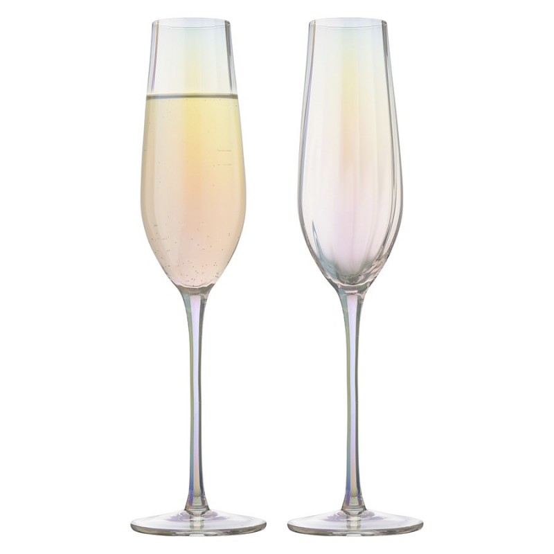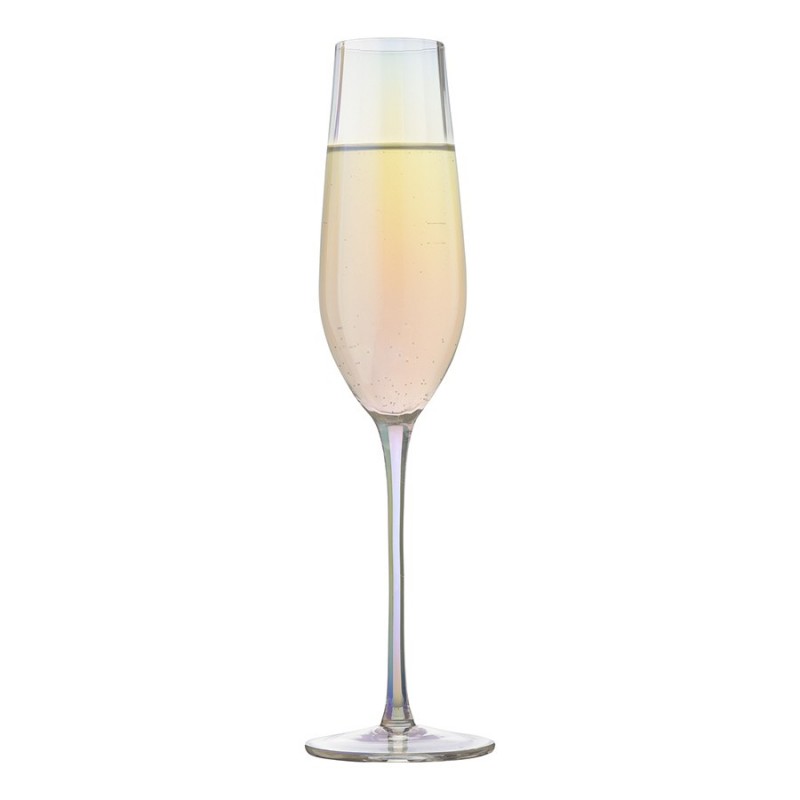Линейка Gemma Opal привлекает лаконичным дизайном и необычным цветовым решением в виде радужных переливов. Вся посуда выполнена вручную из выдувного стекла. Такой способ производства позволяет играть с линиями и изгибами, создавая уникальные и неповторимые продукты. Изделия получаются более прочными, но при этом тоньше и прозрачнее аналогов из обычного стекла.Бокалы для шампанского Gemma Opal специальной вытянутой формы позволят дольше любоваться стройными рядами пузырьков и раскроют все тонкости вкуса и аромата игристого напитка. Зауженная верхняя часть минимизирует соприкосновение жидкости с воздухом, что обеспечивает более медленное испарение углекислоты. Удлиненная ножка делает силуэт утонченным и не дает вину нагреваться от тепла руки. Материал, из которого выполнены изделия, долговечный, не требует сложного ухода. Комбинируйте предметы из одноименной линейки – декантер, бокалы, стаканы для воды, чтобы создать завершенную композицию и удивить гостей изысканной сервировкой.Наши продукты прошли испытания на отсутствие в составе свинца и кадмия в соответствии со стандартными тестами FDA.Материал: выдувное стекло. Размеры: 7,2х7,2х26,7 см. Объем: 225 мл. Количество в наборе: 2 шт.Рекомендовано ручное мытье с помощью мягкой губки с жидким чистящим средством.