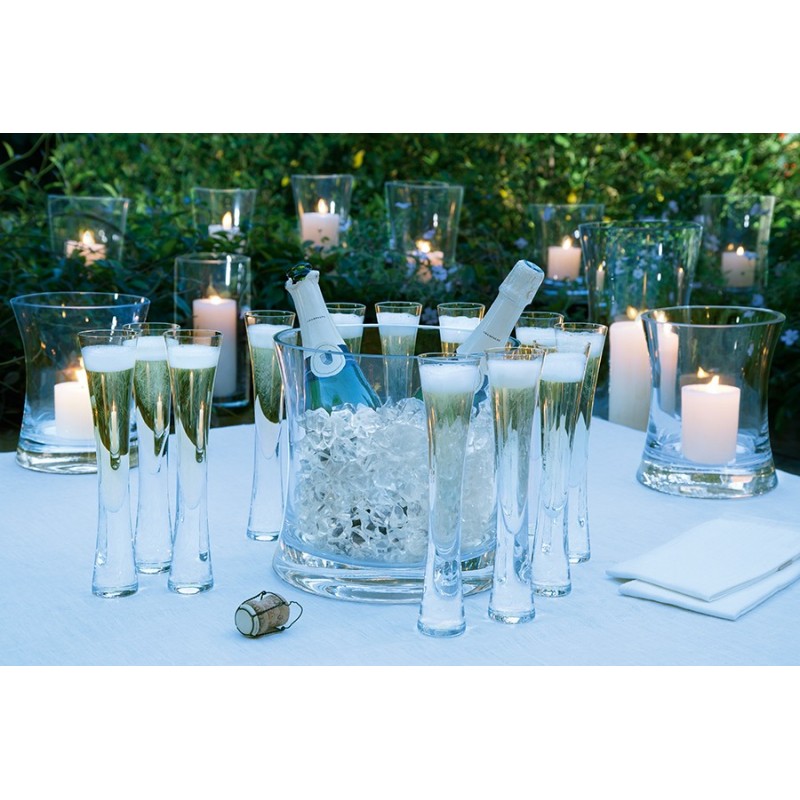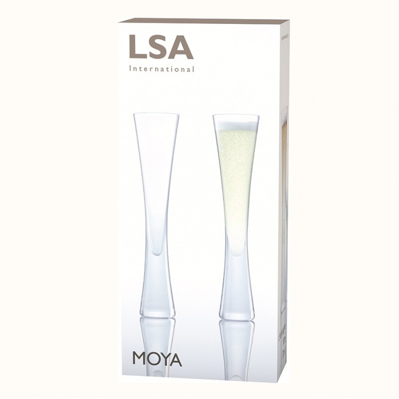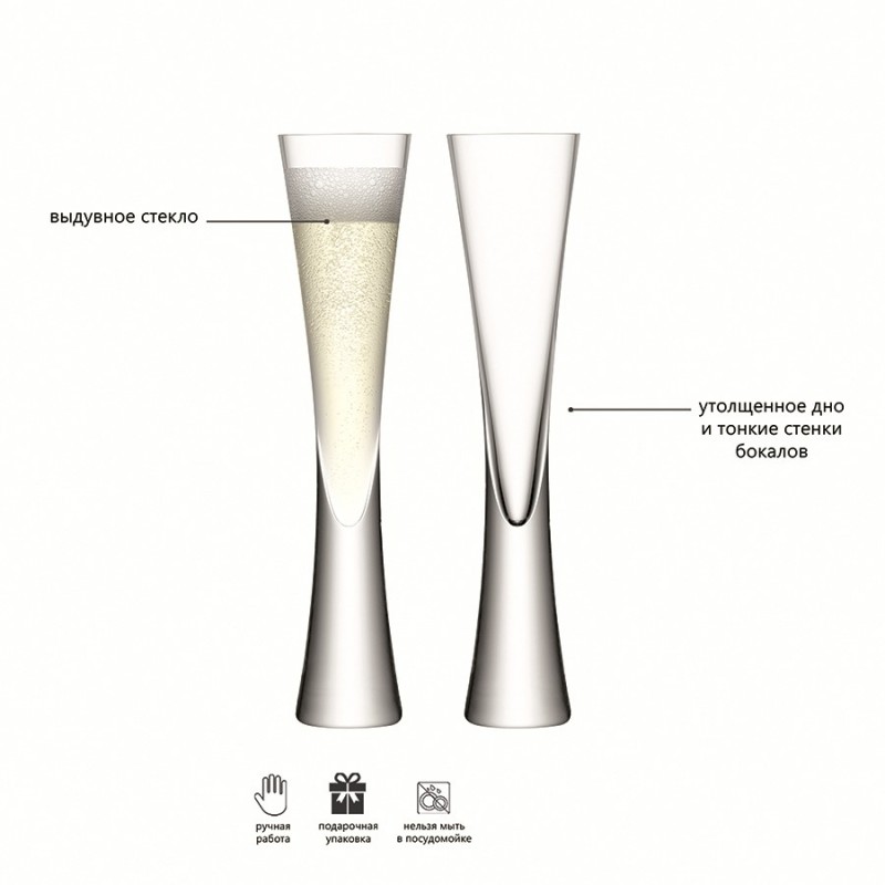 Бокалы для шампанского из коллекции Moya украсят собой любую сервировку. Изделия из выдувного стекла ручной работы привлекают необычной формой и прекрасными эксплуатационными характеристиками.Особенности и преимущества:- Бокалы из выдувного стекла отличаются прочностью, высокой прозрачностью, не имеют производственных швов, благодаря чему выглядят эстетично и изысканно. - Сочетание тонких стенок и утолщенного основания интересной формы обеспечивает изделиям презентабельный вид и удобство использования. - Края бокалов отполированы огнем, благодаря чему имеют безупречно гладкую поверхность. Moya – коллекция барного стекла с тонкими стенками и утолщенным дном. Дизайнеры стремились к созданию совершенных форм и линий, которые напоминали бы о столпах яркого света. Над линейкой работали лучшие мастера бренда LSA International.Важно! Поскольку изделия изготавливаются вручную, их размеры могут незначительно отличаться и допускается наличие пузырьков в толще стекла: круглые < 3 мм, овальные < 5 мм и их небольшие скопления в виде пены. Также возможно наличие прожилок (видимых нитей) на стекле менее 50% длины окружности любого предмета. Все это не брак, а допустимые индивидуальные особенности товаров, произведенных ручным способом.Материал: выдувное стекло. Объем: 170 мл. Размеры: 5,5х5,5х25 см. Количество в наборе: 2 шт.Бокалы рекомендуется мыть вручную в теплой мыльной воде, после чего протирать сухой мягкой тканью.