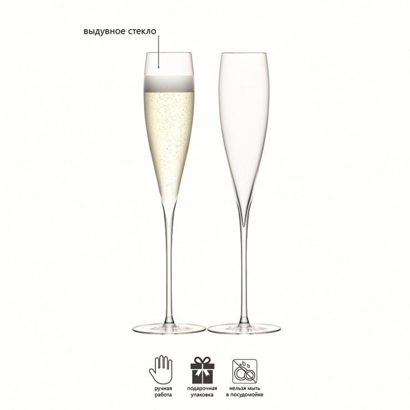Бокалы из коллекции Savoy — сочетание элегантности и изысканности, воплощенное в минималистичном дизайне. Утонченная форма бокалов создана лучшими мастерами бренда LSA International. Сет из 2-х бокалов для шампанского подойдет для торжественных случаев и официальных приемов.Важно! Поскольку изделия изготавливаются вручную, их размеры могут незначительно отличаться и допускается наличие пузырьков в толще стекла: круглые < 3 мм, овальные < 5 мм и их небольшие скопления в виде пены. Также возможно наличие прожилок (видимых нитей) на стекле менее 50% длины окружности любого предмета. Все это не брак, а допустимые индивидуальные особенности товаров, произведенных ручным способом.Материал: выдувное стекло. Объем: 200 мл. Высота: 28 см. Ширина: 7,5 см. Количество в наборе: 2 шт.Рекомендуется мыть вручную в теплой мыльной воде, после чего протирать сухой мягкой тканью.