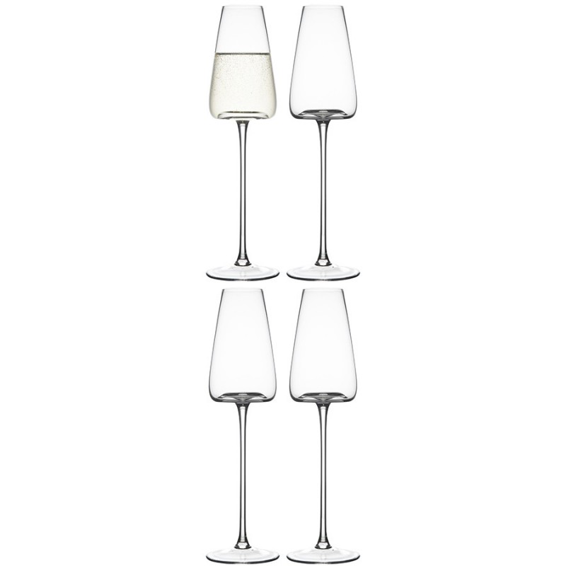 Бокалы для шампанского Sheen – великолепное дополнение к любому праздничному столу. Изящная посуда из стекла ручной работы отличается утонченным дизайном и прекрасными эксплуатационными характеристиками. Особая форма в виде тюльпана позволяет в полной мере раскрыть вкус и аромат любимого напитка. Такой дизайн идеально подходит для винтажных и изысканных марок игристых вин. Специальное углубление на дне бокала создает эффект “клубящихся пузырьков”, что делает подачу шампанского более эффектной.Особенности и преимущества:- Материал является экологичным, обладает устойчивостью к износу, легко очищается от загрязнений. - Благодаря особой технике производства поверхность бокалов украшают мелкие пузырьки, которые придают им неповторимый вид.Материал: выдувное стекло. Объем: 240 мл. Количество в наборе: 4 шт.Можно мыть вручную и в посудомоечной машине.
