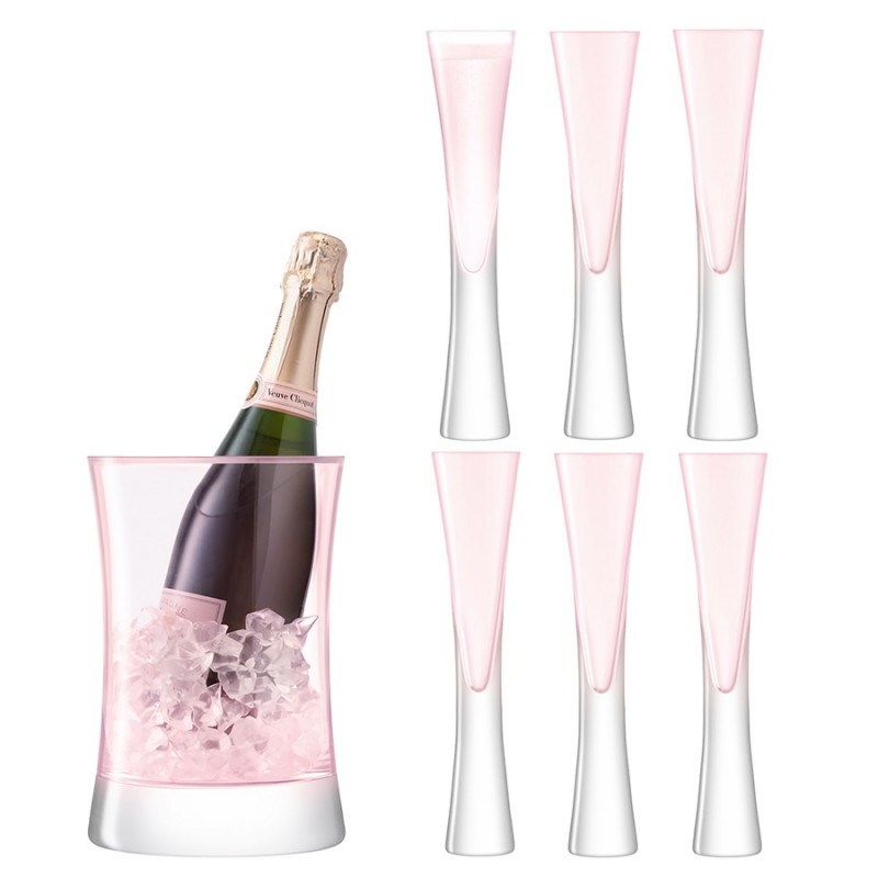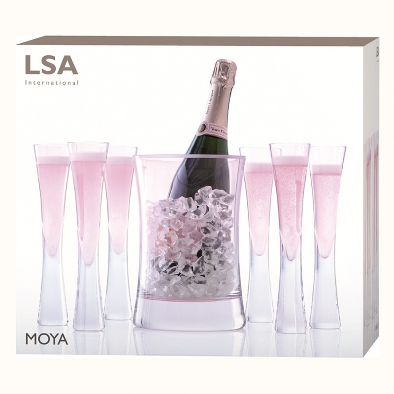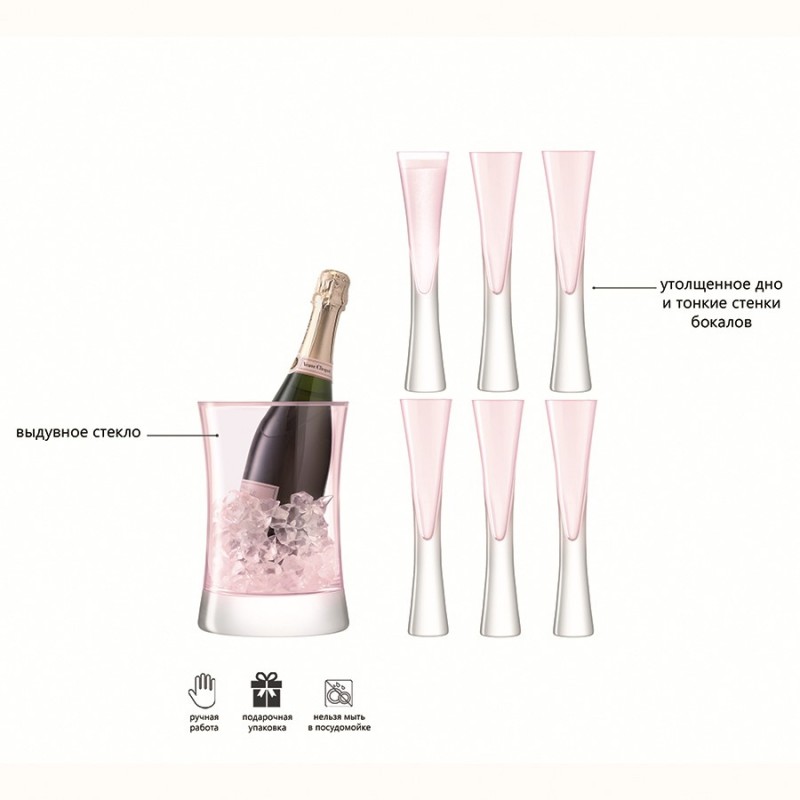 Набор бокалов и ведерко для шампанского из коллекции Moya украсят собой любую сервировку. Изделия из выдувного стекла ручной работы привлекают необычной формой и прекрасными эксплуатационными характеристиками.Особенности и преимущества:- Бокалы из выдувного стекла отличаются прочностью, высокой прозрачностью, не имеют производственных швов, благодаря чему выглядят эстетично и изысканно. - Сочетание тонких стенок и утолщенного основания интересной формы обеспечивает изделиям презентабельный вид и удобство использования. - Ведерко для шампанского имеет элегантную изогнутую форму. - Края бокалов отполированы огнем, благодаря чему имеют безупречно гладкую поверхность. Moya – коллекция барного стекла с тонкими стенками и утолщенным дном. Дизайнеры стремились к созданию совершенных форм и линий, которые напоминали бы о столпах яркого света. Над линейкой работали лучшие мастера бренда LSA International.Важно! Поскольку изделия изготавливаются вручную, их размеры могут незначительно отличаться и допускается наличие пузырьков в толще стекла: круглые < 3 мм, овальные < 5 мм и их небольшие скопления в виде пены. Также возможно наличие прожилок (видимых нитей) на стекле менее 50% длины окружности любого предмета. Все это не брак, а допустимые индивидуальные особенности товаров, произведенных ручным способом.Материал: выдувное стекло. Объем бокалов: 170 мл. Высота бокалов: 25 см. Ширина бокалов: 6 см.Бокалы и ведерко рекомендуется мыть вручную в теплой мыльной воде, после чего протирать сухой мягкой тканью.