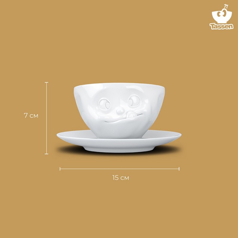 Комплект из оригинальной чашки и блюдца отлично подойдет для подачи кофе и чая.Чашка и блюдце выполнены из высококачественного фарфора. Поставляются в красивой подарочной коробке.Размер чашки: 7х11,7х14 смДиаметр блюдца: 15 смМожно мыть в посудомоечной машине и ставить в микроволновую печь.