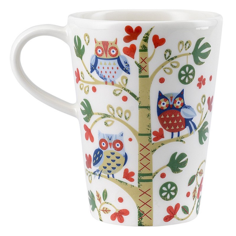 Кружка Owl из коллекции Birds of Paradise – красивая и качественная посуда из фарфора, которая украсит интерьер кухни и сделает любую сервировку особенной.Особенности и преимущества:- Нанесение слоя глазури поверх узора позволяет изделию сохранять безупречный вид долгие годы, даже после воздействия высоких температур и частого мытья в посудомоечной машине. - Кружка из высококачественного глазурованного фарфора имеет идеально гладкую поверхность, с которой легко удаляются любые загрязнения. - Материал обладает прочностью, является экологичным, безопасным для здоровья, не подвержен старению. - Яркий принт природной тематики приковывает взгляды и позволяет посуде стать настоящим украшением любого стола. - Кружка поставляется в фирменной подарочной упаковке.Коллекция Birds of Paradise разработана английской художницей Karen Wall, основным направлением творчества которой является создание иллюстраций для посуды, домашнего текстиля и детских книг. В основе дизайна – природные мотивы, вдохновленные традиционным фольклором Великобритании 19-го века. Атмосфера волшебного леса с райскими птицами погружает в мир добрых грез и фантазий, где всегда тепло, уютно и есть место чудесам.Наши продукты прошли испытания на отсутствие в составе свинца и кадмия в соответствии со стандартными тестами FDA.Материал: фарфор. Размеры: 8,6х8,6х11,6 см. Объем: 350 мл.Можно мыть в посудомоечной машине, использовать в микроволновой печи и духовке при температуре не более 250° C.