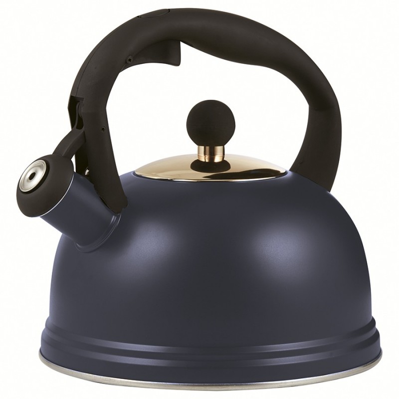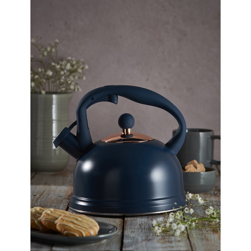 Чайник со свистком Otto поможет быстро приготовить ароматный кофе или чай. Емкость выполнена из нержавеющей стали с термостойким наружным покрытием. Материал обладает высокими прочностными характеристиками, не подвержен коррозии и деформации. Эргономичная ручка с мягкой накладкой не скользит и удобно ложится в ладонь, обеспечивая безопасное использование. Cпециальный механизм позволяет легко открывать насадку-свисток одним нажатием кнопки. Чайник подходит для любой варочной поверхности, в том числе для индукционных плит.Материалы: сталь. Объем: 2 л. Цвет: синий.Перед первым использованием чайник рекомендуется хорошо вымыть вручную в теплой воде с мягким моющим средством. Запрещается применение абразивных материалов и агрессивной бытовой химии.