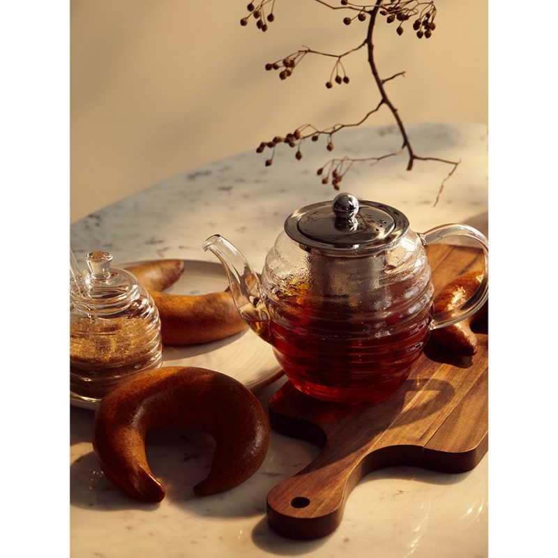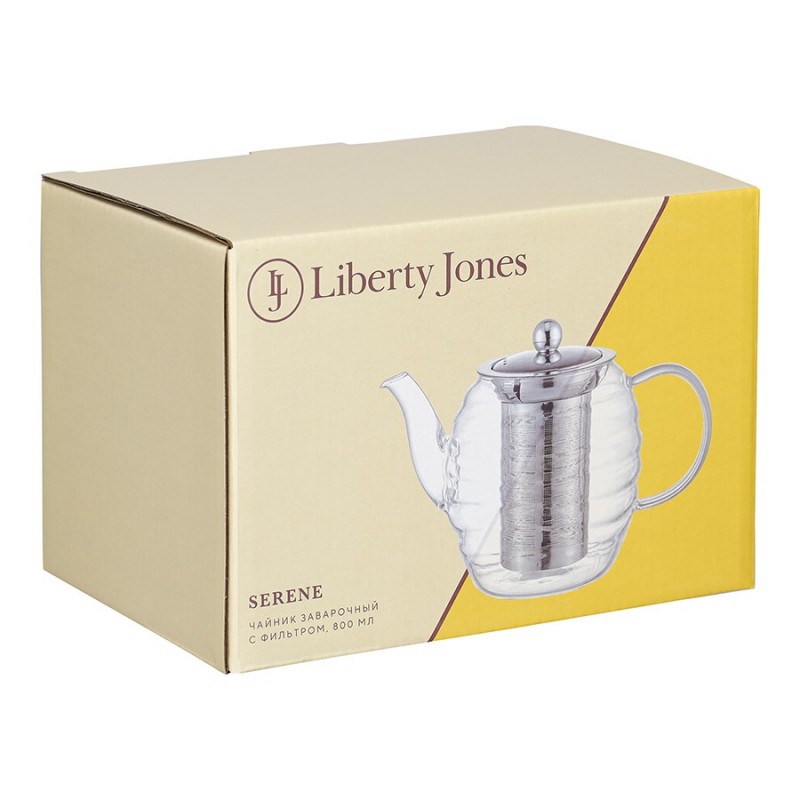 Заварочный чайник Serene от бренда Liberty Jones подарит настоящее удовольствие от чаепития. Его необычный дизайн непременно привлечет внимание, а наличие фильтра позволит наслаждаться чистым напитком с насыщенным вкусом и ароматом.Особенности и преимущества:- Емкость выполнена из боросиликатного стекла, обладающего высокой прочностью, стойкостью к износу, запахам, пятнам и температурным перепадам. - Фильтр из нержавеющей стали гарантирует чистоту и сохранность вкусовых характеристик напитка. - Чайник объемом 800 мл идеально подходит для заваривания чая как для одного, так и для нескольких человек. - Удобная ручка и легкий вес обеспечивают комфорт при наливании и переноске. - Простота разборки и мытья делает уход за чайником максимально удобным. - Объемный волнистый узор эффектно выделяет линейку Serene среди других коллекций.Наши продукты прошли испытания на отсутствие в составе свинца в соответствии со стандартными тестами FDA.Материалы: боросиликатное стекло, нержавеющая сталь. Объем: 800 мл. Размеры: 7,7х7,7х11,4 см.Можно мыть вручную и в посудомоечной машине.