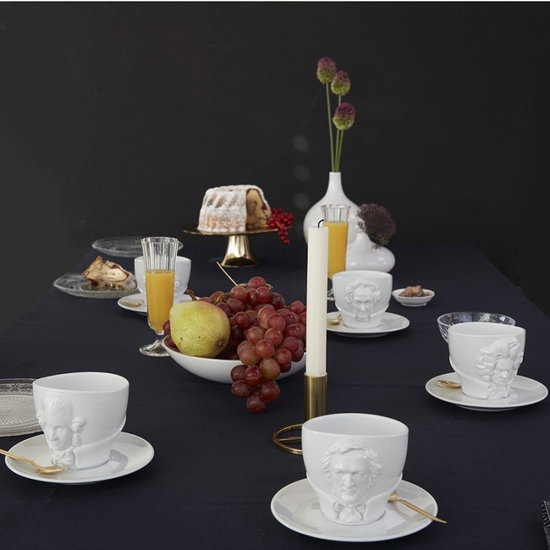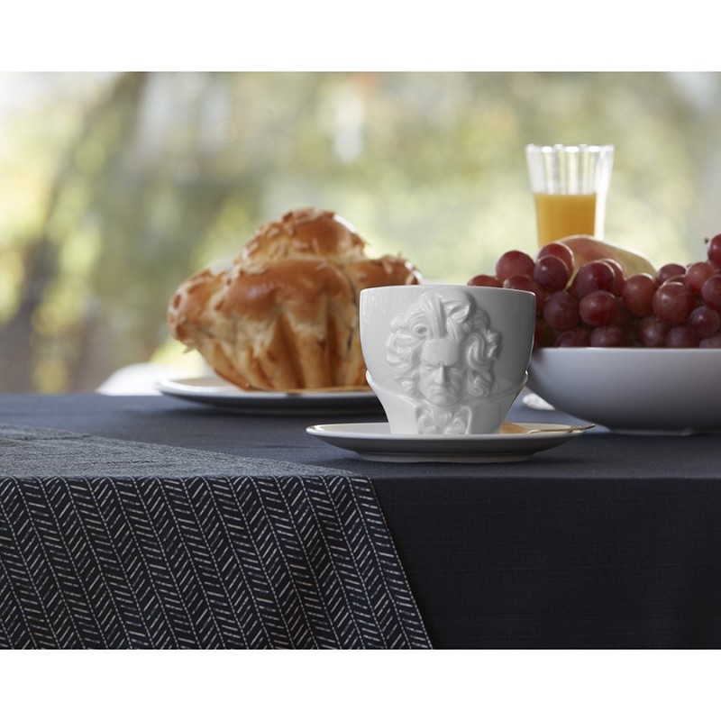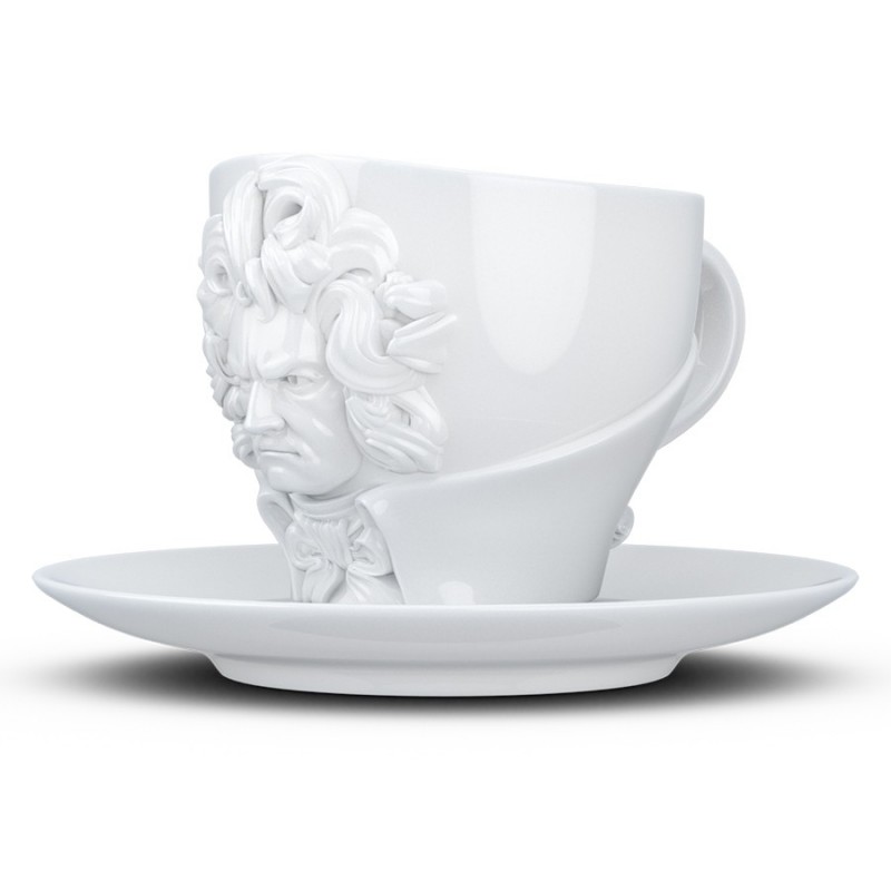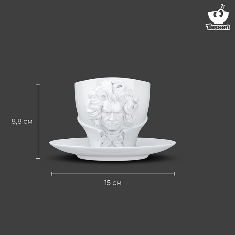 Чайная пара бренда Tassen из коллекции Talent станет центральной частью сервировки и превосходным подарком. Чашка украшена объемным изображением композитора Людвига ван Бетховена.Набор состоит из чашки и блюдца. Изделия выполнены из прочного высококачественного фарфора и покрыты эмалью. Диаметр блюдца: 15 см. Поставляется в красивой подарочной упаковке.Можно мыть в посудомоечной машине и ставить в микроволновую печь.