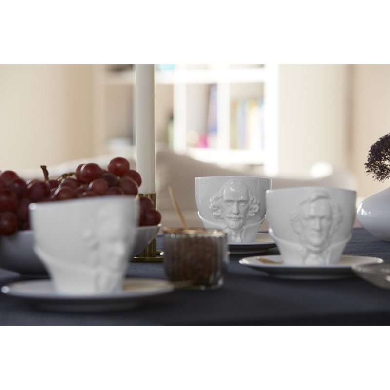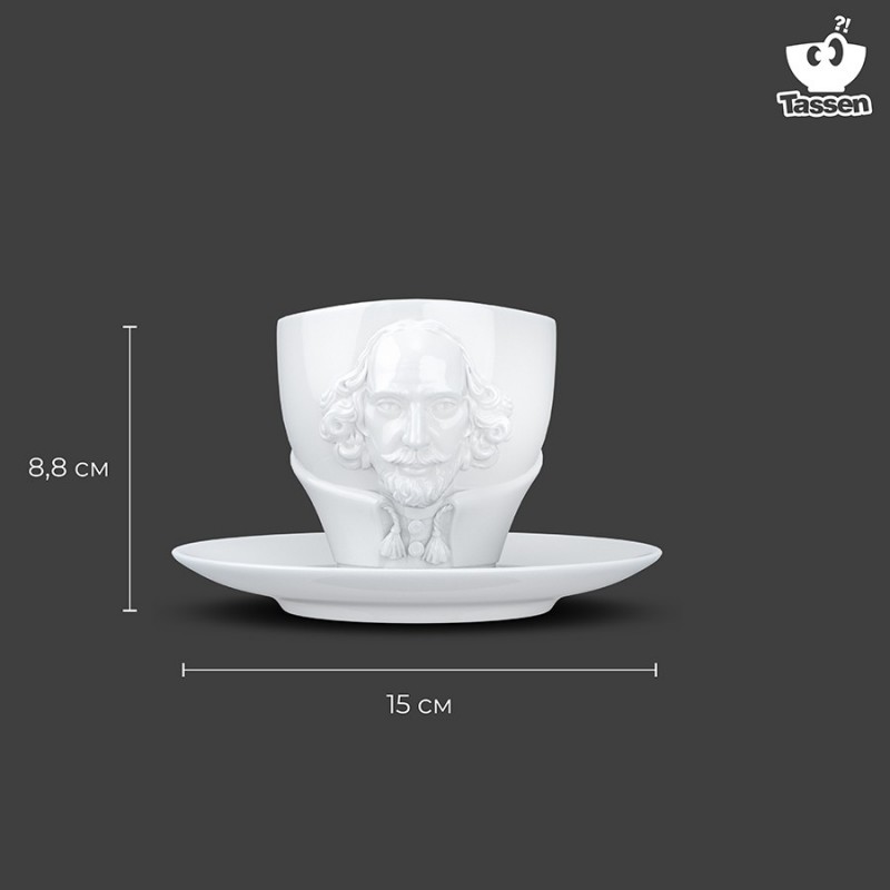 Чайная пара бренда Tassen из коллекции Talent станет центральной частью сервировки и превосходным подарком. Чашка украшена объемным изображением поэта Уильяма Шекспира.Набор состоит из чашки и блюдца. Изделия выполнены из прочного высококачественного фарфора и покрыты эмалью. Диаметр блюдца: 15 см. Поставляется в красивой подарочной упаковке.Можно мыть в посудомоечной машине и ставить в микроволновую печь.