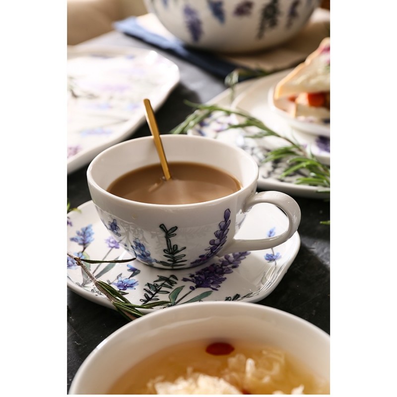 Чашки с блюдцами из коллекции Floral – прекрасный вариант для всех, кто ценит сочетание качества и эстетики. Цветущая лаванда, изображенная на белоснежной поверхности, превращает посуду в настоящее украшение стола. Такая чайная пара идеально подходит для уютных чаепитий в стиле кантри и прованс. Материал изготовления неприхотлив в уходе, не впитывает загрязнения, является экологичным и безопасным для здоровья.Чистое сырье высочайшего качества и собственная формула глазуровки с обжигом при температуре 1250 °C делают изделия из фарфора особо прочными, устойчивыми к растрескиванию и появлению сколов. Глазурь и декор не тускнеют со временем, сохраняя первоначальный цвет и блеск. Наши продукты прошли испытания на отсутствие в составе свинца и кадмия в соответствии со стандартными тестами FDA.Материал: фарфор. Объем чашки: 250 мл. Диаметр блюдца: 16 см. Количество предметов в наборе: 4 шт.Посуду рекомендуется очищать от загрязнений в теплой воде с помощью мягкой губки с жидким средством. Допускается мытье в посудомоечной машине, использование в морозильной камере, микроволновой печи и духовке при температуре не выше 180 °C.