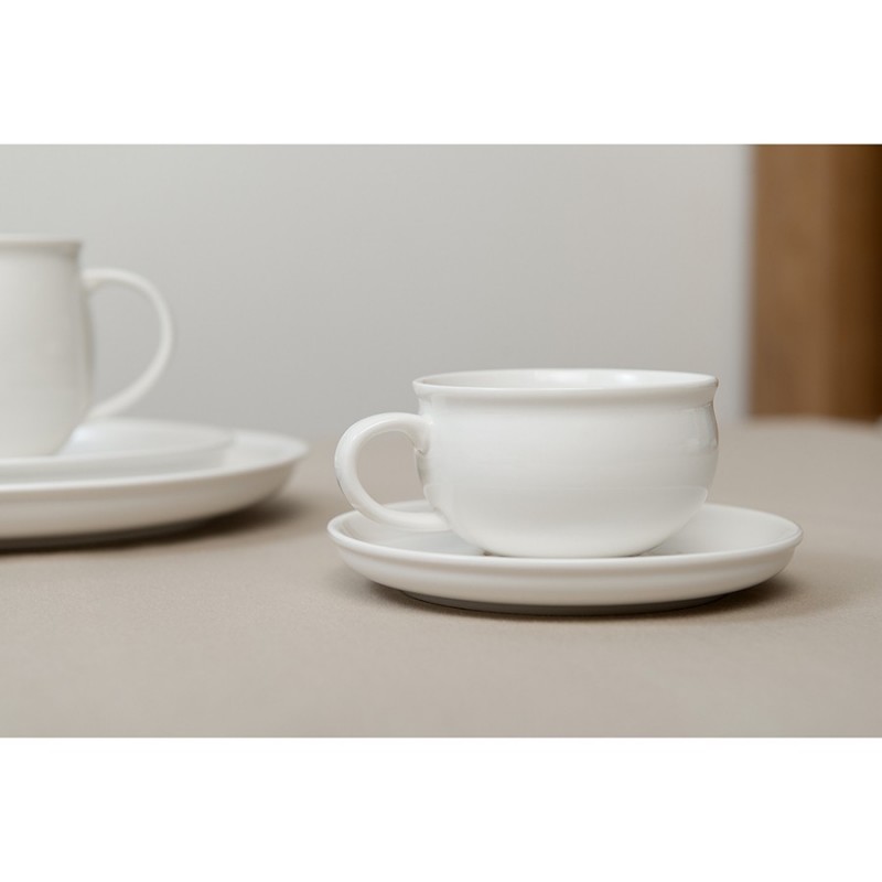 Чайная пара из белоснежного фарфора серии Milky Cloud сочетает в себе стильный дизайн и премиальное качество. Благодаря элегантным обтекаемым формам чашки и блюдца из набора смотрятся изысканно и благородно, органично вписываются в любую сервировку. Устойчивый к износу материал обеспечивает изделиям безупречный вид на протяжении всего срока службы. С идеально гладкой и ровной поверхности легко удаляются любые загрязнения.Чистое сырье высочайшего качества и собственная формула глазуровки с обжигом при температуре 1250 °C делают изделия из фарфора особо прочными, устойчивыми к растрескиванию и появлению сколов. Глазурь и декор не тускнеют со временем, сохраняя первоначальный цвет и блеск. Наши продукты прошли испытания на отсутствие в составе свинца и кадмия в соответствии со стандартными тестами FDA.Материал: фарфор. Объем чашки: 250 мл. Диаметр блюдца: 15 см. Количество предметов в наборе: 4 шт.Посуду рекомендуется очищать от загрязнений в теплой воде с помощью мягкой губки с жидким средством. Допускается мытье в посудомоечной машине, использование в морозильной камере, микроволновой печи и духовке при температуре не выше 180 °C.