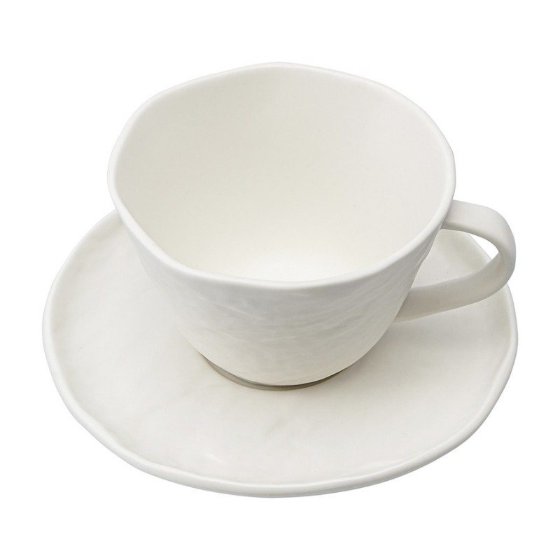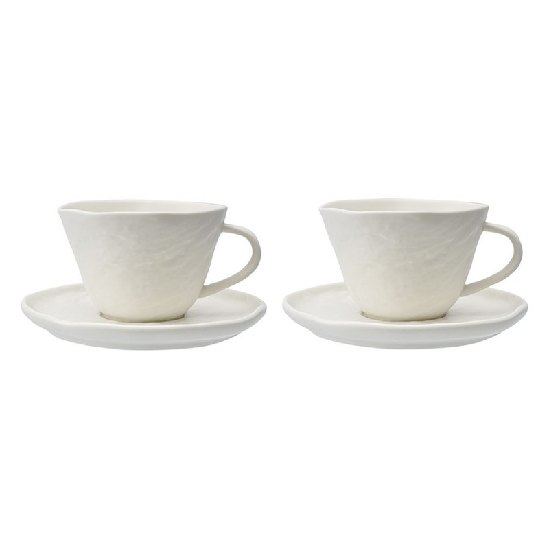 Набор чайных пар из коллекции White Cliffs от дизайнерского бренда Liberty Jones – прекрасное решение для сервировки в современном или классическом стиле. Высокие эстетические свойства фарфора и необычная “каменистая” фактура делают эту линейку настоящим украшением любого стола.Особенности и преимущества:- Посуда из фарфора имеет утонченный вид, отличается прочностью, небольшим весом, не требует сложного ухода. - Материал является экологичным, безопасным для здоровья, устойчив к бытовой химии и не подвержен старению. - Блюдца с закругленными краями не дают случайно пролитой жидкости попасть на стол или одежду. - Поверхность изделий украшает приятный рельеф, что привносит в дизайн нотки легкости и свежести. - Белая посуда отлично гармонирует с предметами сервировки любой цветовой гаммы.В коллекции White Cliffs ослепительная белизна фарфора ассоциируется с чистотой и спокойствием, а его “каменистая” фактура, будто созданная ветрами и волнами, придает каждому предмету уникальный характер. Эта линейка посуды позволяет ощущать единство с природой, не покидая уютных стен дома, и превращает каждый прием пищи в незабываемое событие.Материал: фарфор. Размеры чашки: 21,2х10,3х6,8 см. Размеры блюдца: 15х15х1,5 см. Объем чашки: 250 мл. Количество чайных пар в наборе: 2 шт. Цвет: белый.Можно мыть в посудомоечной машине, замораживать, использовать в микроволновой печи и духовке при температуре не более 180° C.