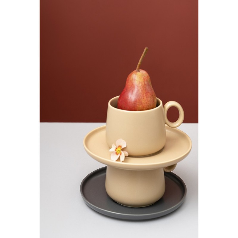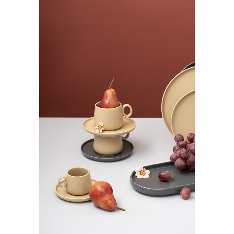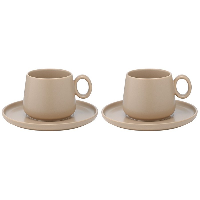Набор из двух фарфоровых чайных пар нежного бежевого цвета подойдет как для праздничной сервировки, так и для ежедневного чаепития. Сдержанный скандинавский дизайн чашек и блюдец станет украшением вашей кухни, а необычная форма будет радовать каждый день. Гладкая фарфоровая поверхность с приятным, чуть приглушенным глянцем благородно выглядит и вместе с тем очень практична — не царапается и легко отмывается от загрязнений. Чайные пары можно дополнить другими предметами из серии Essential — например, тарелками, блюдами и салатниками.Размеры чашки: 9х11,5х7,5 см. Размеры блюдца: 16х16х1,5 см. Объем: 250 мл. Материал: фарфор.• Можно использовать в микроволновой печи • Можно мыть в посудомоечной машине • Можно использовать в духовке при температуре не более 180° C • Можно замораживать