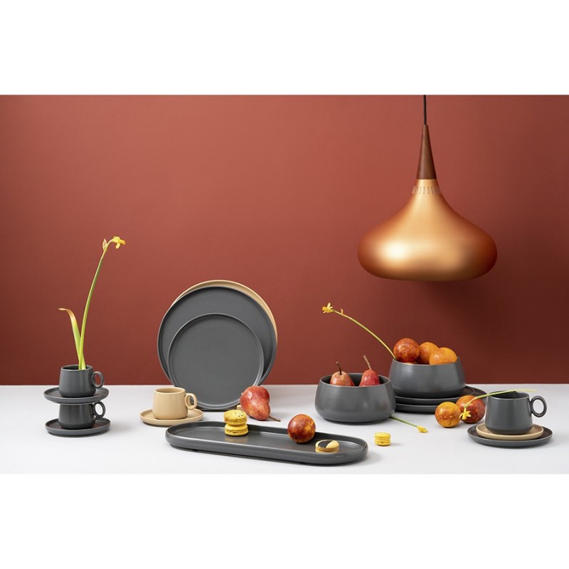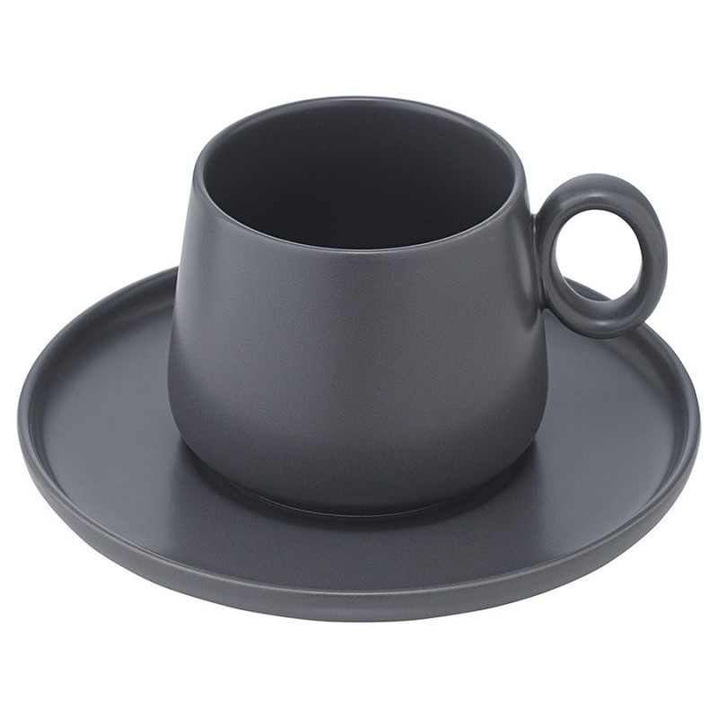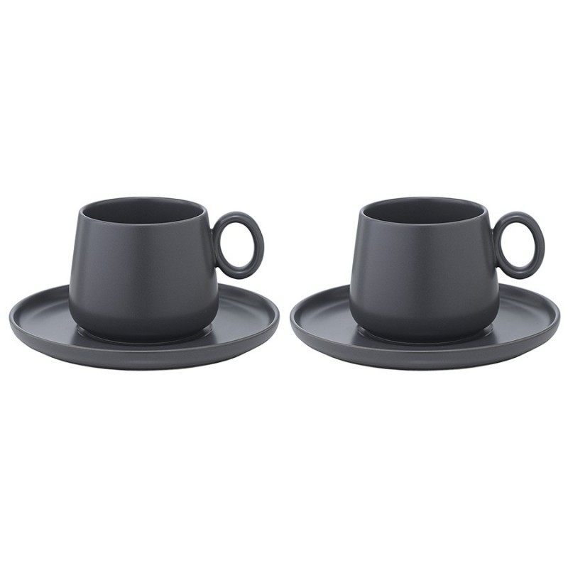 Набор из двух фарфоровых чайных пар глубокого серого цвета подойдет как для праздничной сервировки, так и для ежедневного чаепития. Сдержанный скандинавский дизайн чашек и блюдец станет украшением вашей кухни, а необычная форма будет радовать каждый день. Гладкая фарфоровая поверхность с приятным, чуть приглушенным глянцем благородно выглядит и вместе с тем очень практична — не царапается и легко отмывается от загрязнений. Чайные пары можно дополнить другими предметами из серии Essential — например, тарелками, блюдами и салатниками.Размеры чашки: 9х11,5х7,5 см. Размеры блюдца: 16х16х1,5 см. Объем: 250 мл. Материал: фарфор.• Можно использовать в микроволновой печи • Можно мыть в посудомоечной машине • Можно использовать в духовке при температуре не более 180° C • Можно замораживать